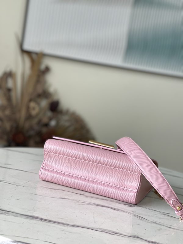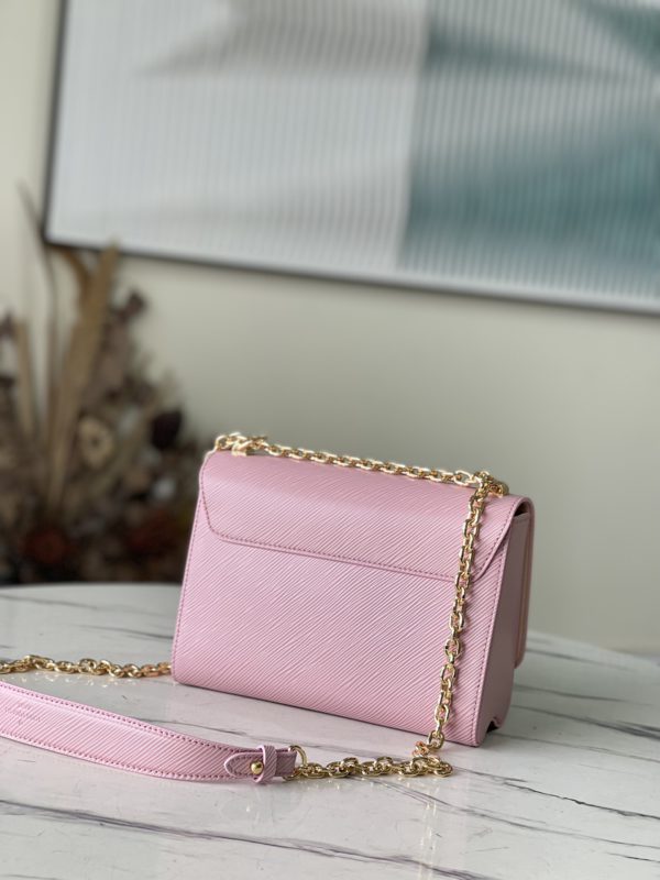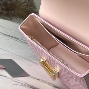 This Twist medium handbag is made of iconic Epi grain leather, and declares summer fashion in eye-catching new colors. Leather lining creates color contrast, and the sliding chain shoulder strap has leather shoulder pads for comfortable shoulder and cross-body wear.