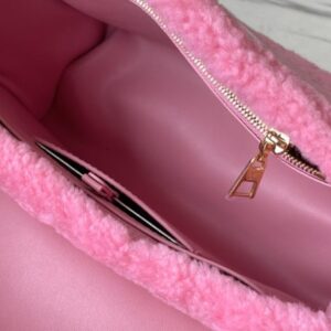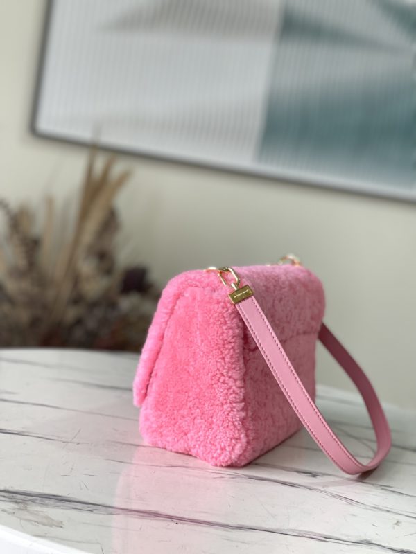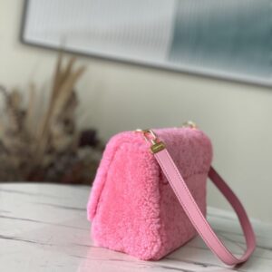 Pink plush TWIST medium handbag This Twist medium handbag focuses the eye in bright wool leather, and then embellishes the double chain with enamel Monogram flowers. Both the chain and leather shoulder straps are detachable, so you can switch between a variety of carrying methods.