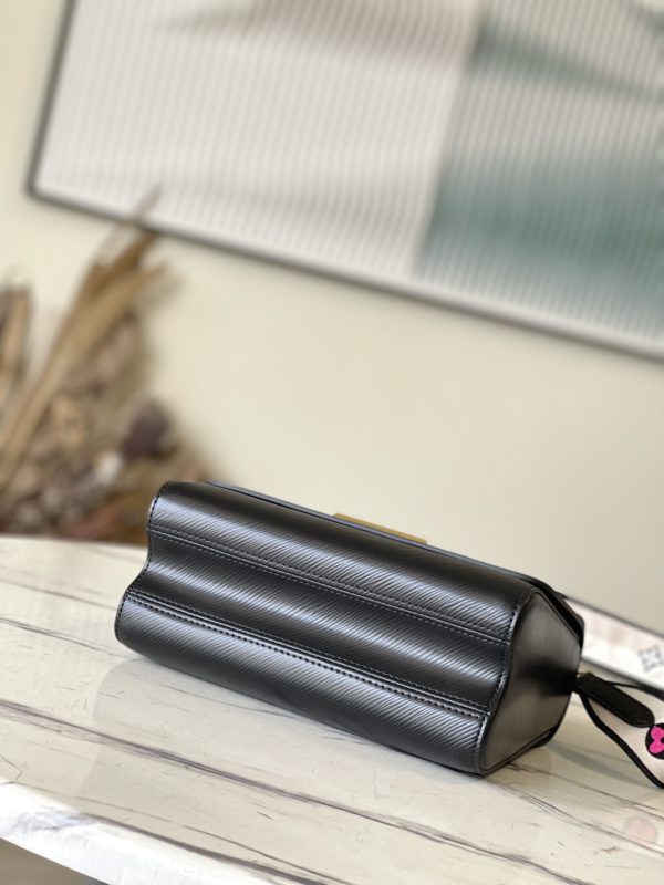 This Twist medium handbag has a new look with a detachable wide jacquard shoulder strap: one side embroidered logo, the other side blooms Monogram flowers, with a detachable leather handle, which can be carried by hand, cross-body and elbow. Switch as you like.