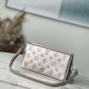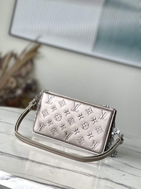 Pearl gold full leather chain bag series VAVIN chain wallet Vavin chain wallet combines Louis Vuitton’s classic Damier canvas and leather ingeniously. The design element of the brand’s traditional luggage is transformed into a silver hook clasp, which is inlaid with a flap. Full leather embossed flower embossed woc shoulder bag with chain double shoulder straps, clever use of detachable chain shoulder straps, easy to change a variety of carrying methods, suitable for day and night occasions.