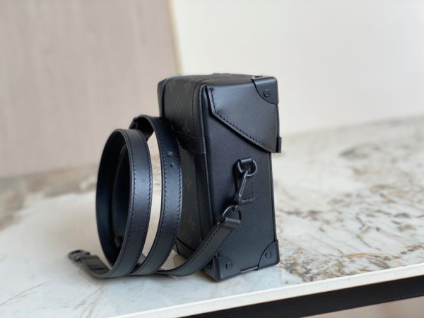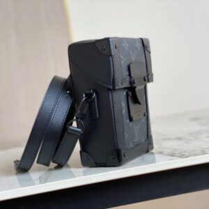 black flower men’s bag mobile phone bag series VERTICAL TRUNK mini handbag Vertical Trunk mini handbag adheres to the design concept rooted in the depths of Louis Vuitton, using Monogram Eclipse canvas to create a square configuration, with rivets and reinforcement bags The corners highlight the brand’s traditional hard case elements. The magnetic flap secures storage, and the detachable and adjustable shoulder strap makes it easy to carry over the shoulder or across the body.