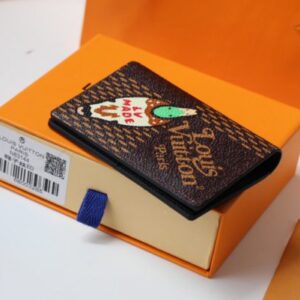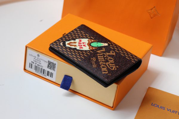 Virgil Abloh teamed up with Japanese streetwear icon Nigo to create this pocket wallet. The image of a duck carrying the LV MADE logo appears on the surface of Giant Damier Ebene canvas, and the compact design contains multiple pockets and card slots.