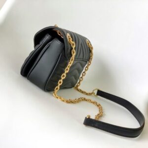 This New Wave small chain bag combines the Wave chain bag and the Multi Pochette Accessoires handbag. Padded quilted calfskin creates a wave shape, and the sliding chain shoulder strap allows long or short shoulder and cross-body options. Dimensions: 21 x 12 x 9 cm