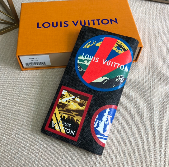 2018 winter Brazza wallet, Damier Graphite canvas fabric, LV Alp theme design. Incorporating classic Louis Vuitton elements into the majestic mountains of the Alps through retro-style patches, it is a limited edition long wallet with considerable collection value. Smooth and neat appearance, exquisite and reasonable internal structure, with multiple pockets and compartments.