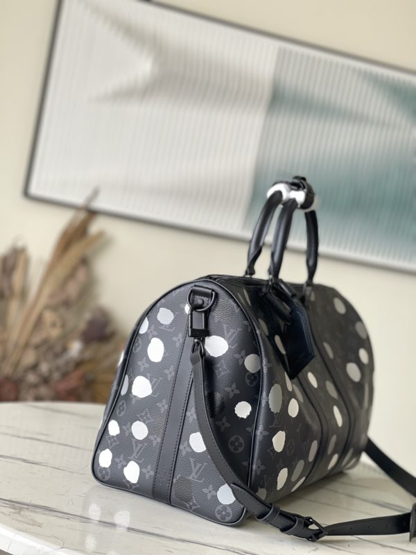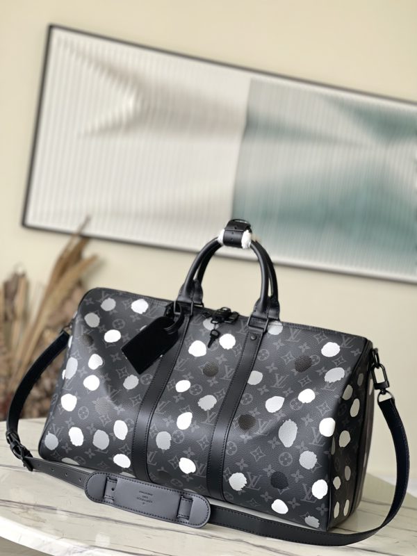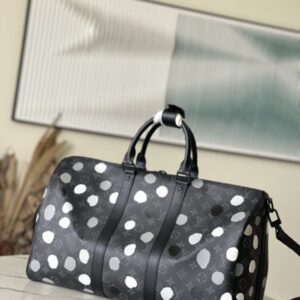 YK Keepall 45 travel bags are from the x Yayoi Kusama cooperation series. The polka dot pattern is depicted on the Monogram Eclipse canvas, praising the fusion of artistic creativity and exquisite craftsmanship, and once again becoming a good collection. Japanese artist Yayoi Kusama’s fascination with polka dots began in childhood, and she runs through her personal works as a concrete expression of disorder.