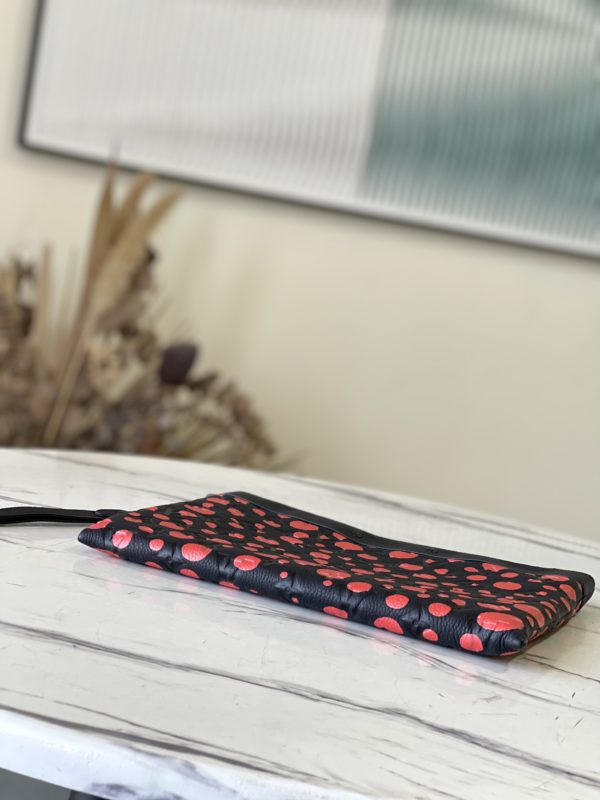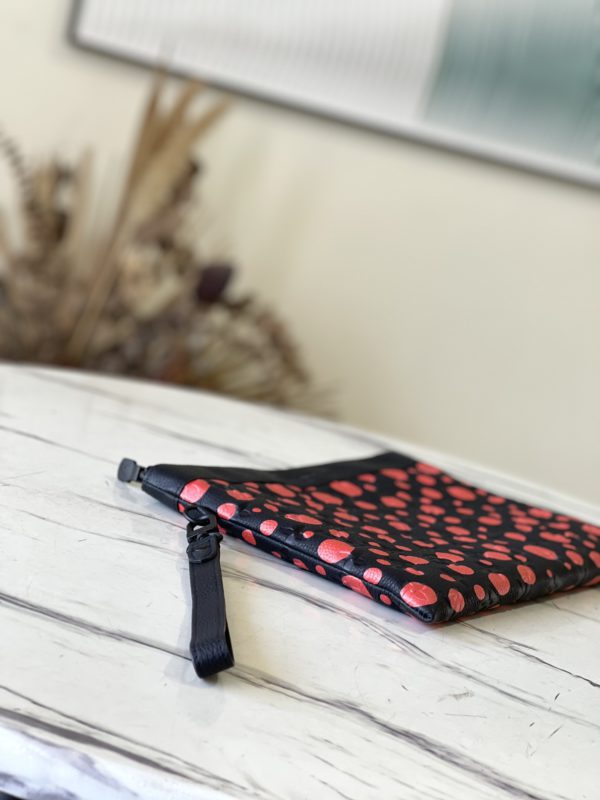 Yayoi Kusama joined hands again to continue the creative connection between the brand and the Japanese artist. The x YK Pochette To Go clutch is embossed with the traditional Monogram pattern on Taurillon leather, reflecting Yayoi Kusama’s obsession with the polka dot print, making it a collectible item among striking elements that seem to repeat infinitely.