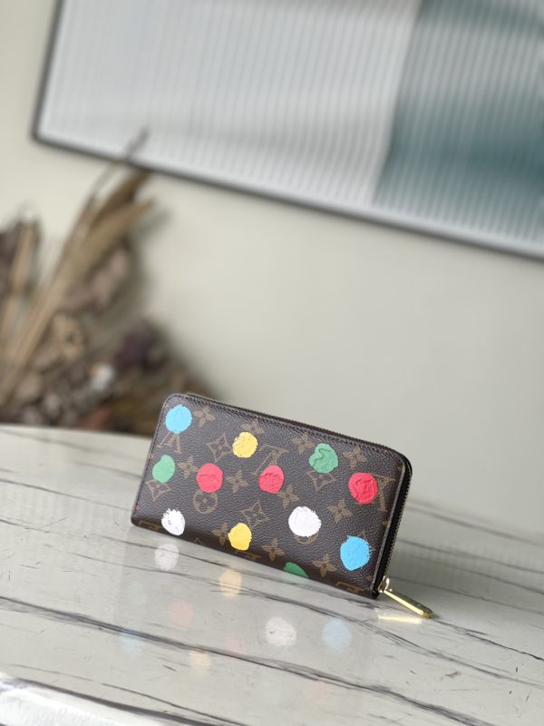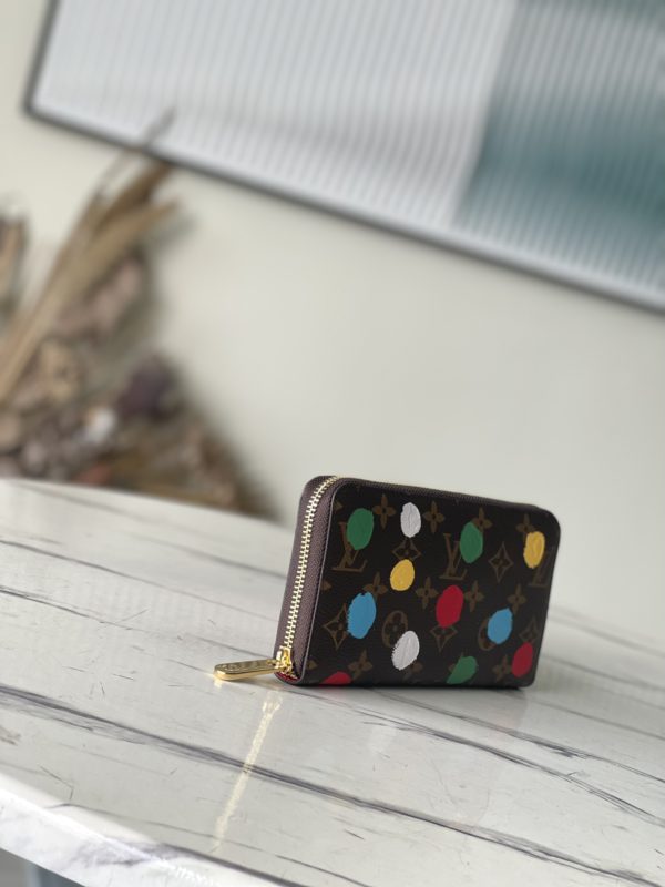 ZIPPY zipper wallet Polka dot master Yayoi Kusama cooperation series Zippy zipper wallet pays tribute to Louis Vuitton’s tradition of travel and making suitcases, the wallet is decorated with travel-style patches and logos. With its compact interior and clean design, this wallet is ideal for everyday use.