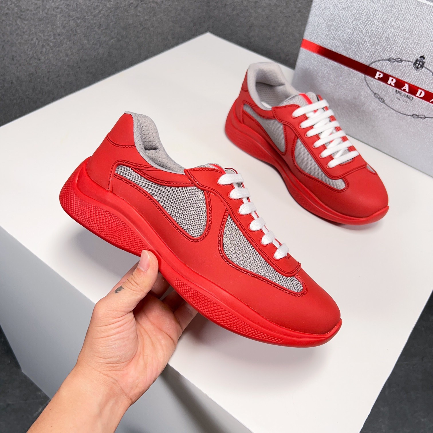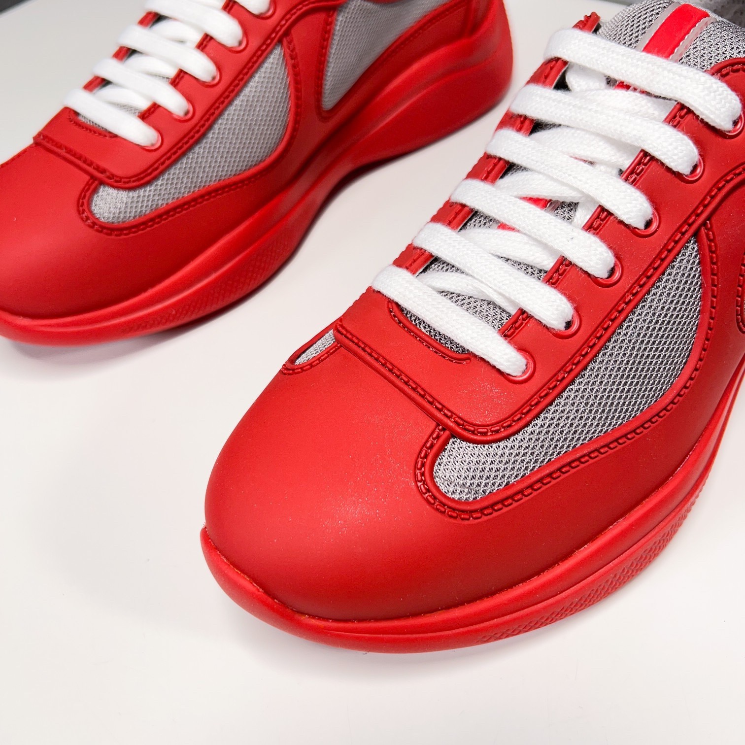 Prada America’s Cup Sneakers in Red Rubber and Bike Fabric