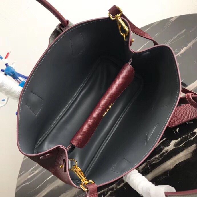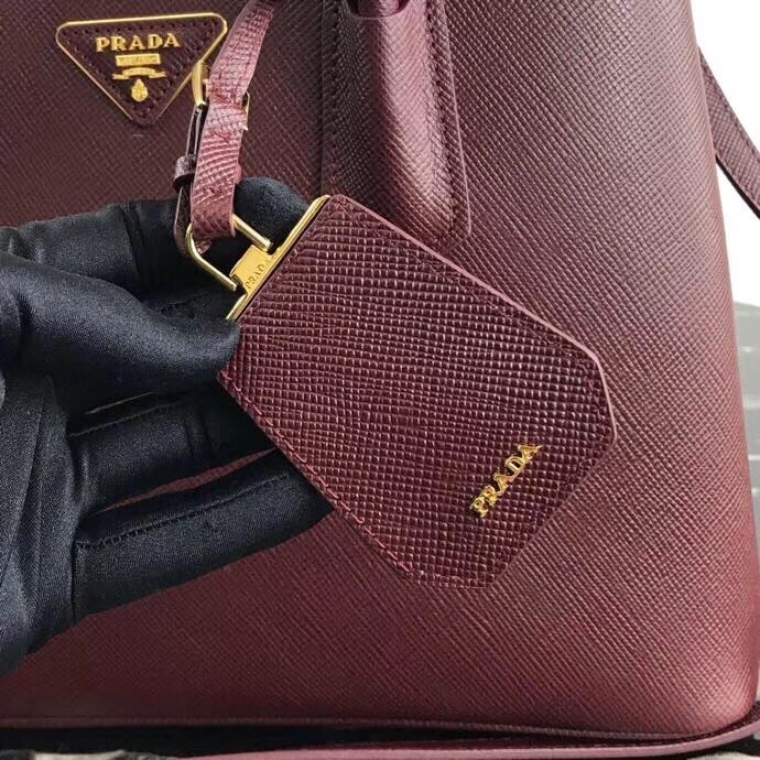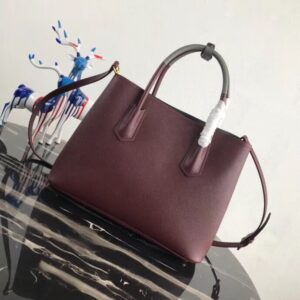 Prada Bicolor Double Medium Garnet Saffiano Bag