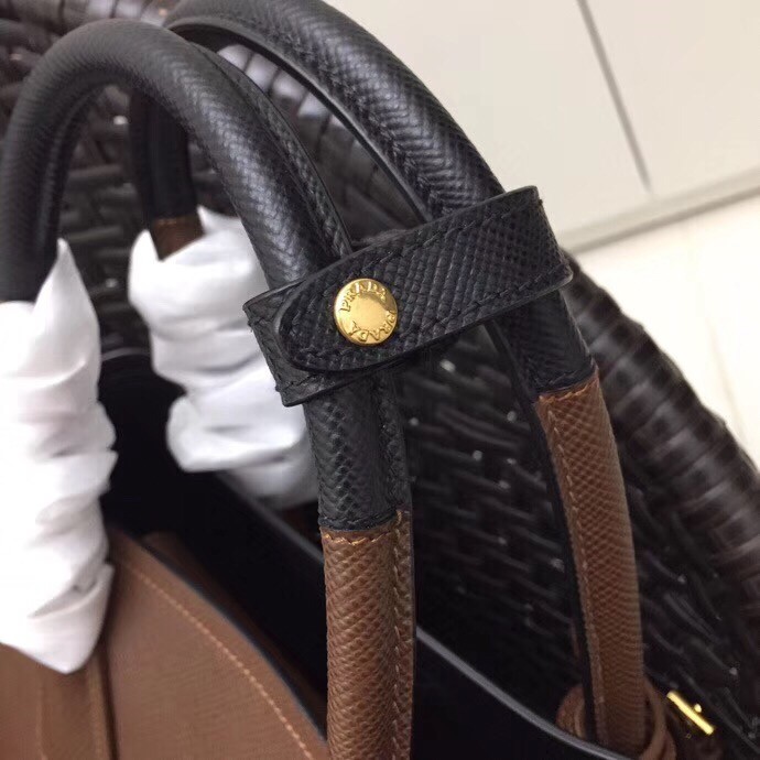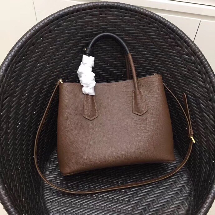 Prada Bicolor Double Medium Palisander Saffiano Bag