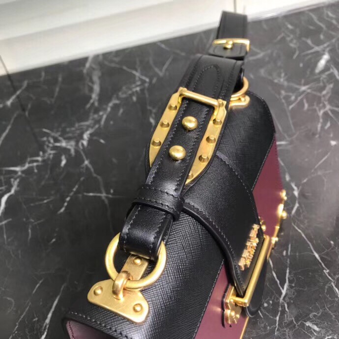 Prada Cahier Shoulder Bag In Bordeaux/Black Leather