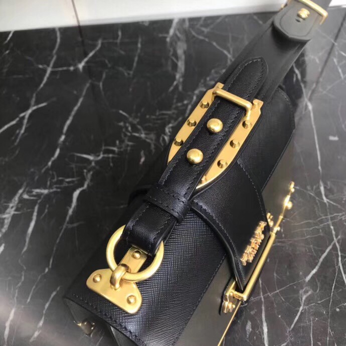 Prada Cahier Shoulder Bag In Green/Black Leather