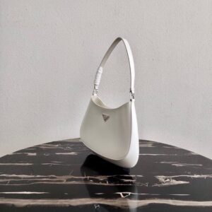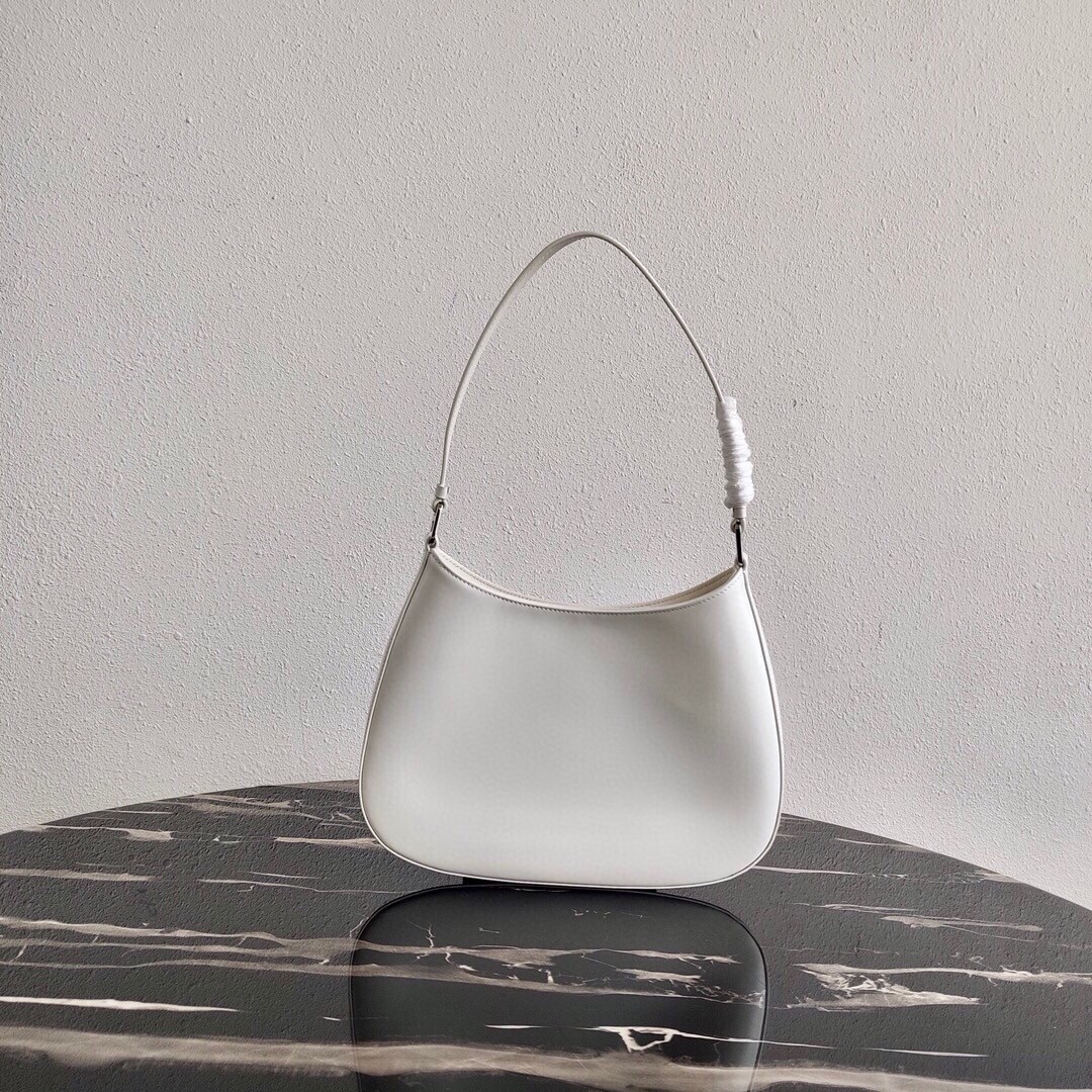 Prada Cleo Small Shoulder Bag In White Brushed Leather