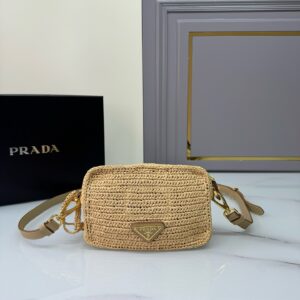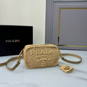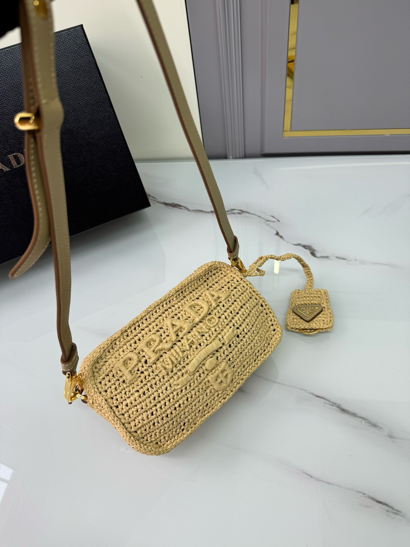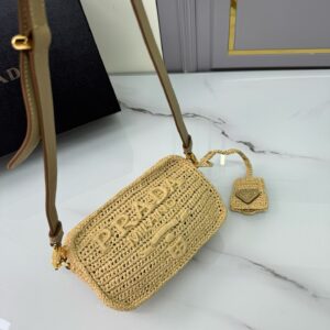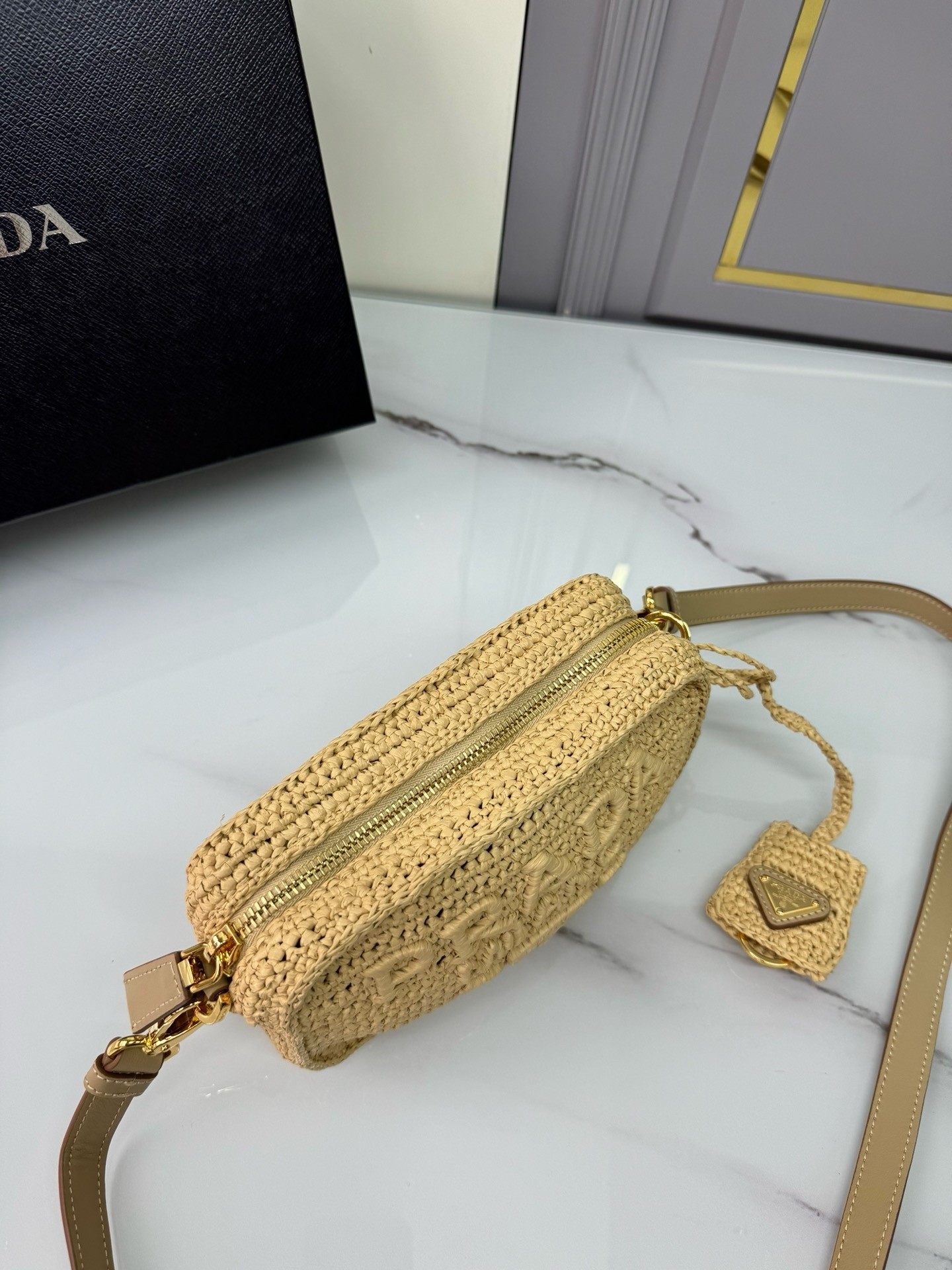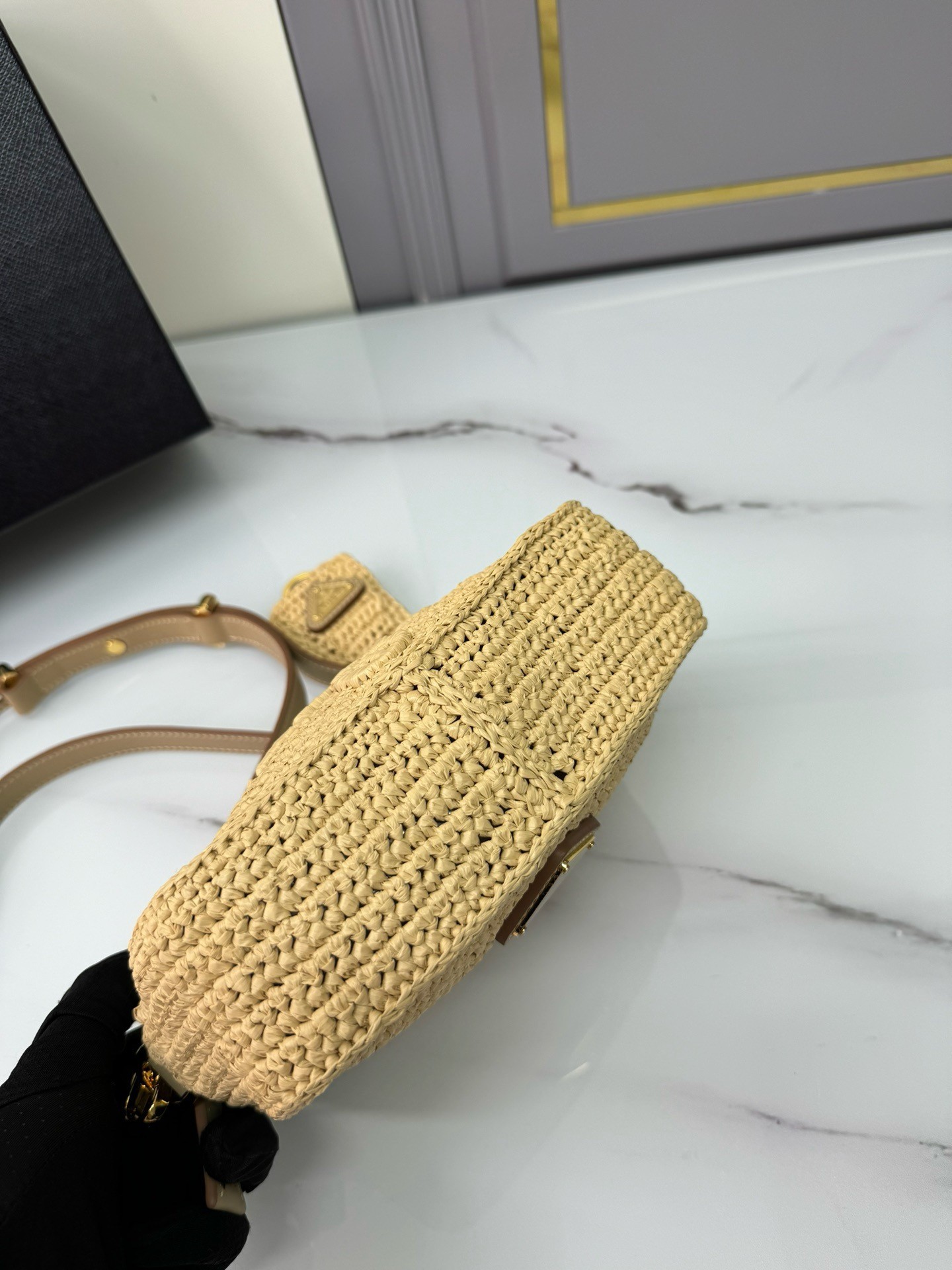 Prada Crochet Shoulder Bag in Natural Raffia-effect Yarn