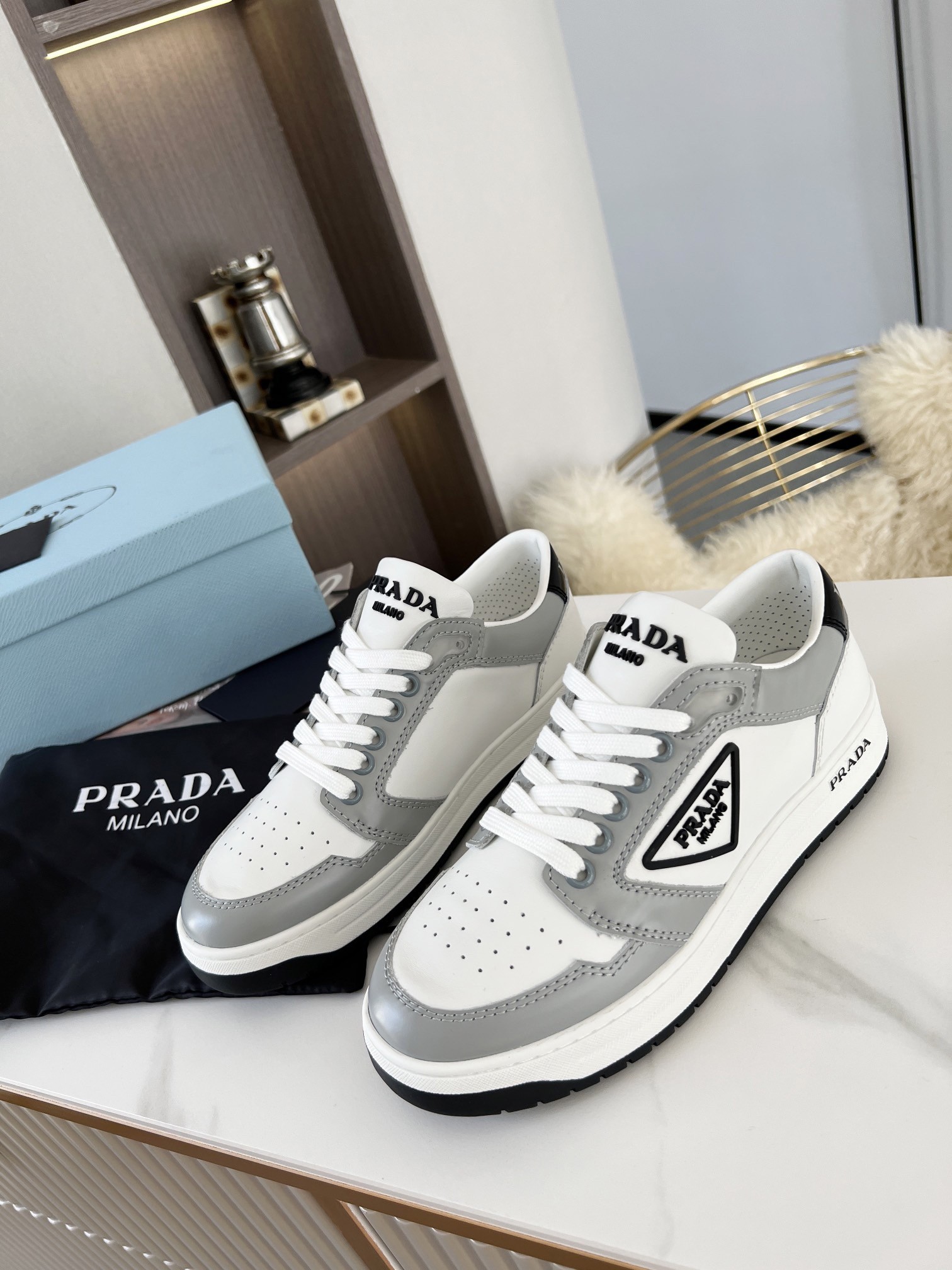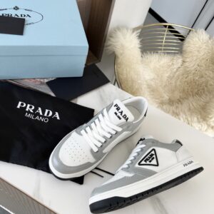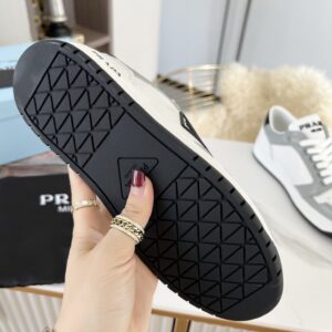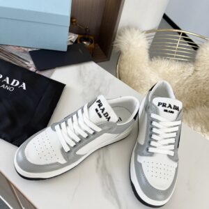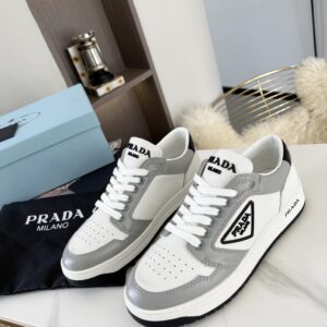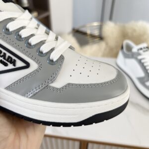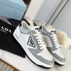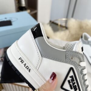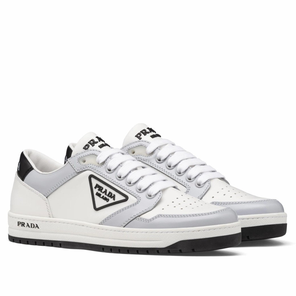 Prada District Sneakers in White and Grey Calfskin