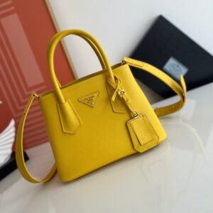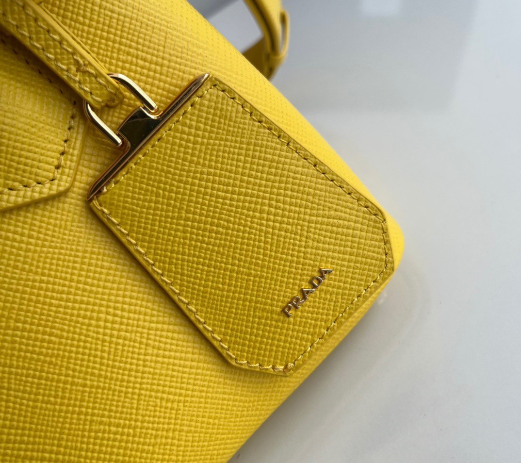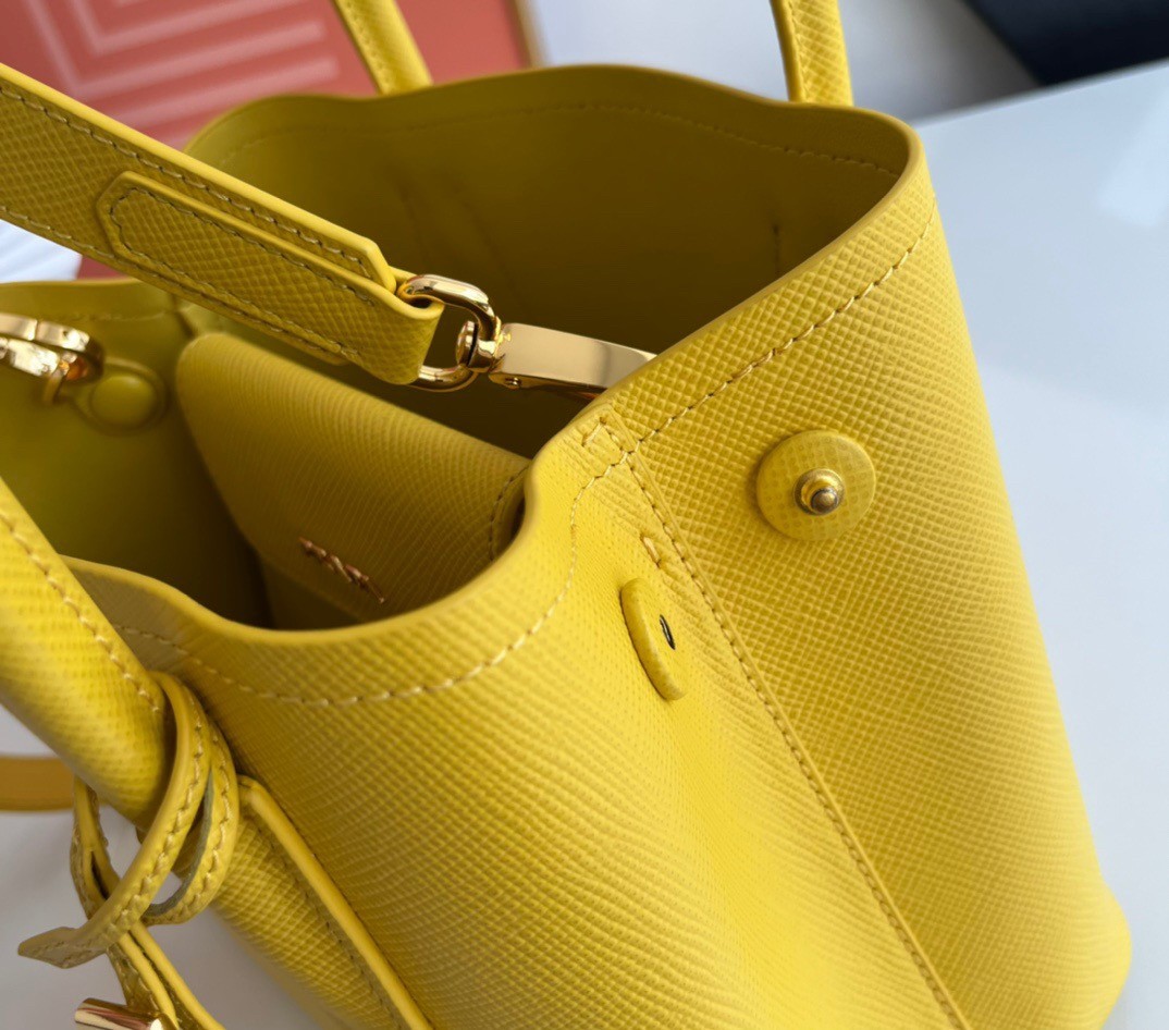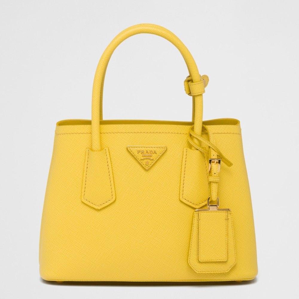 Prada Double Mini Bag In Yellow Saffiano Leather