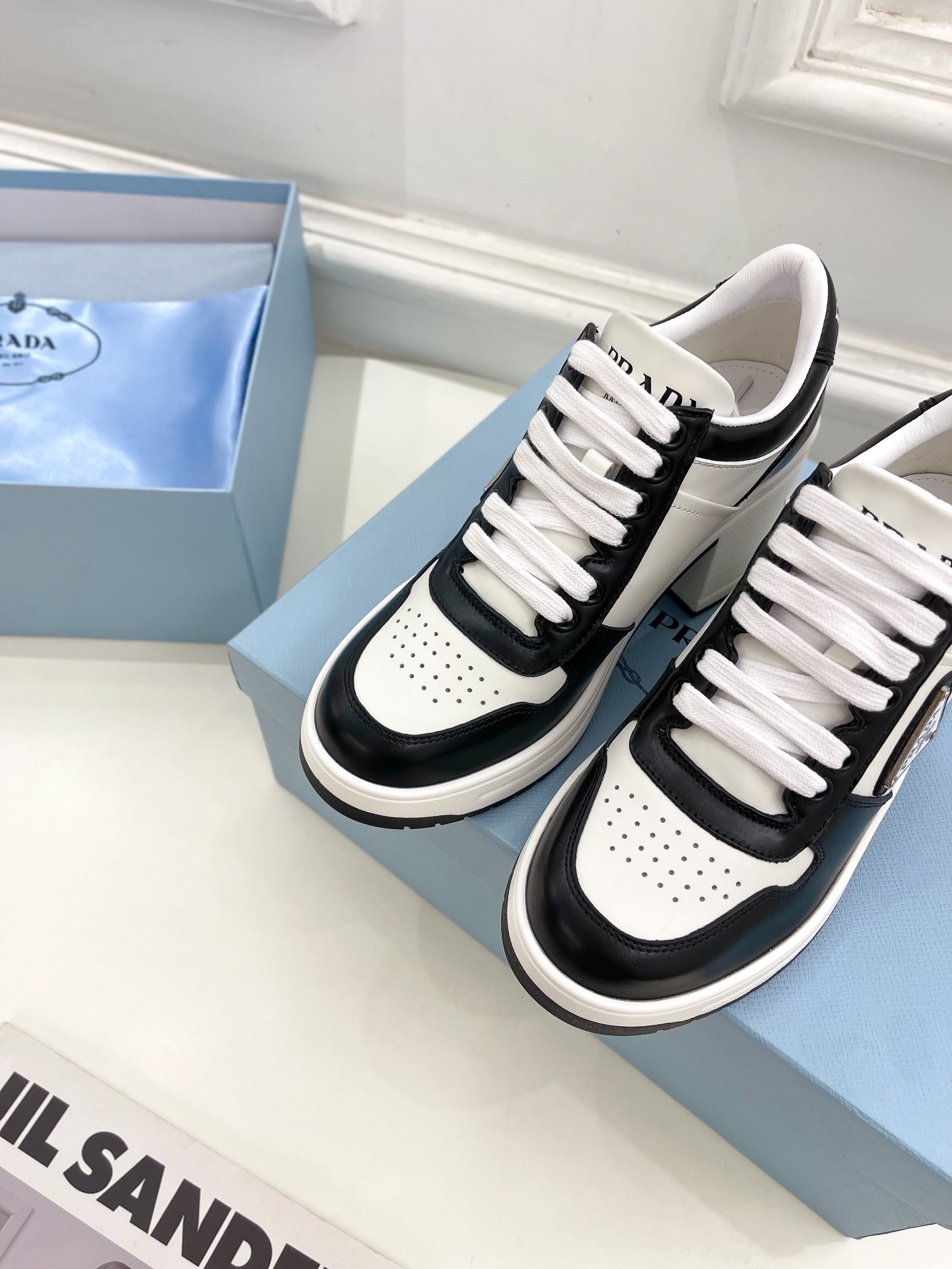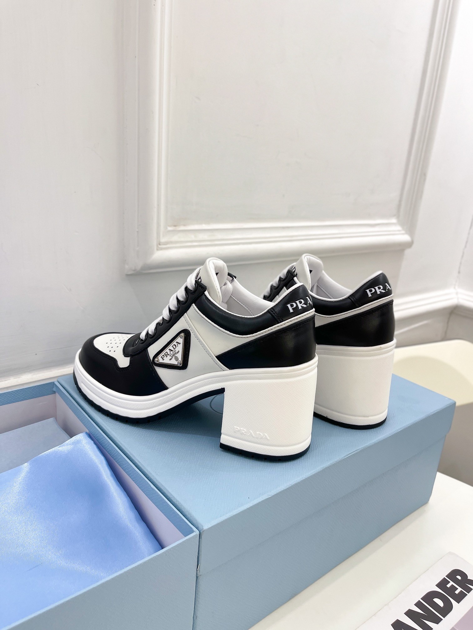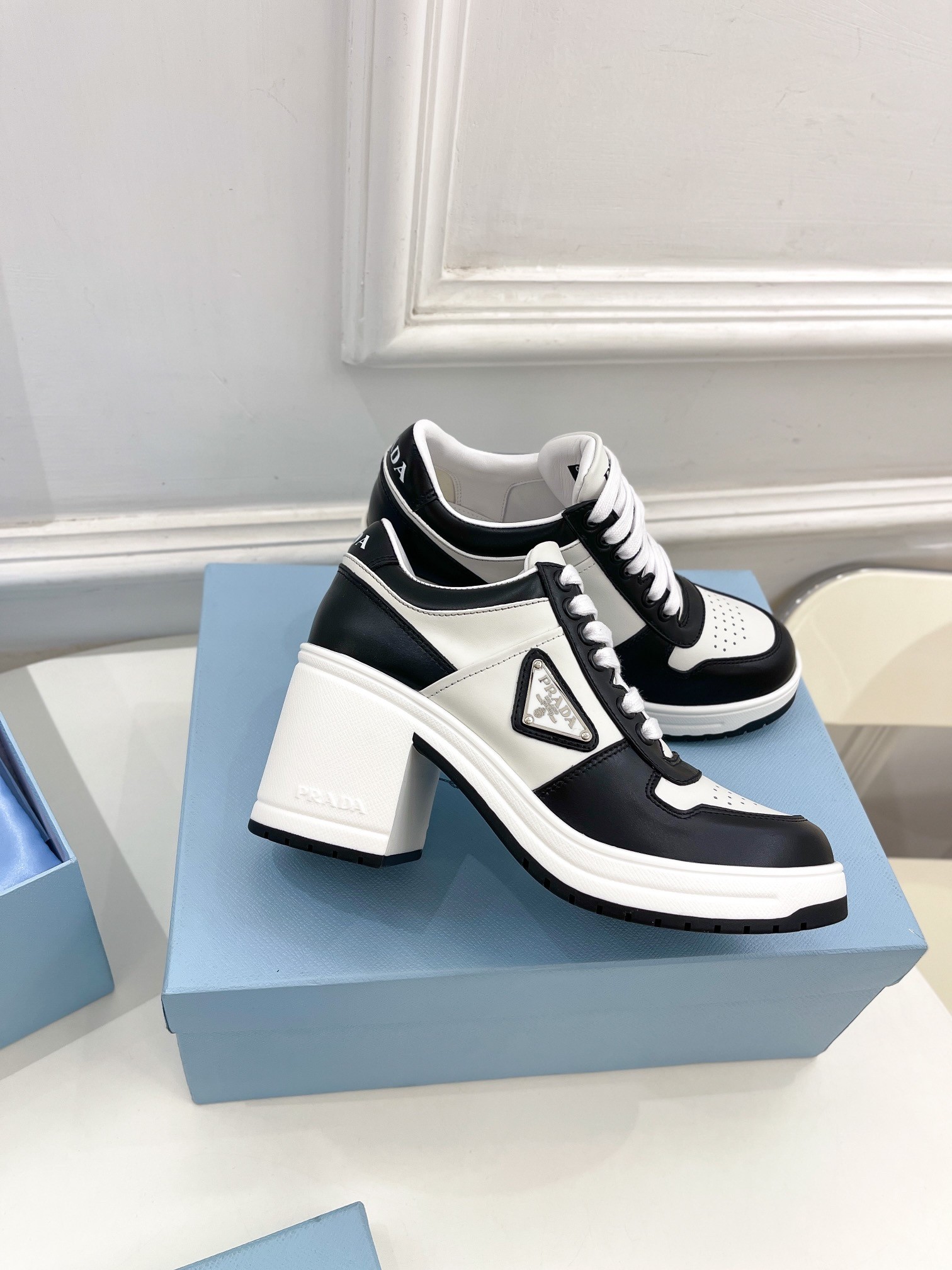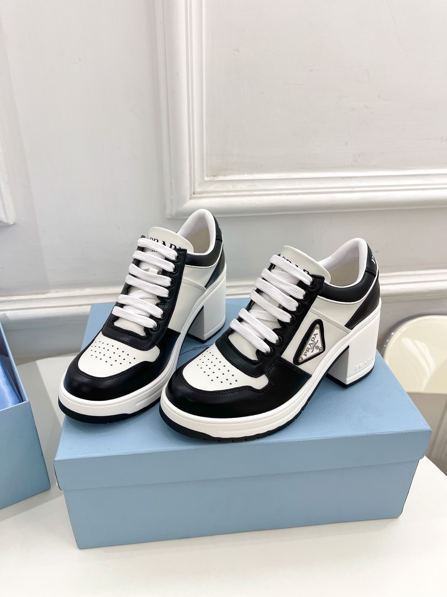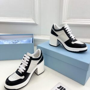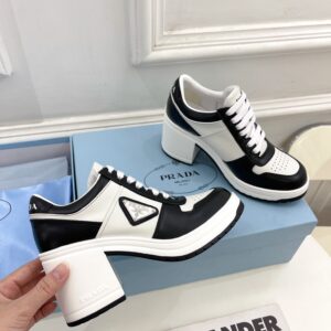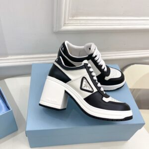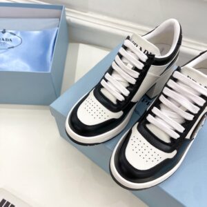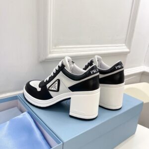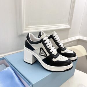 Prada Downtown High-heeled Sneakers in Black and White Leather