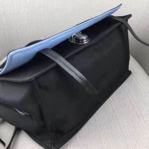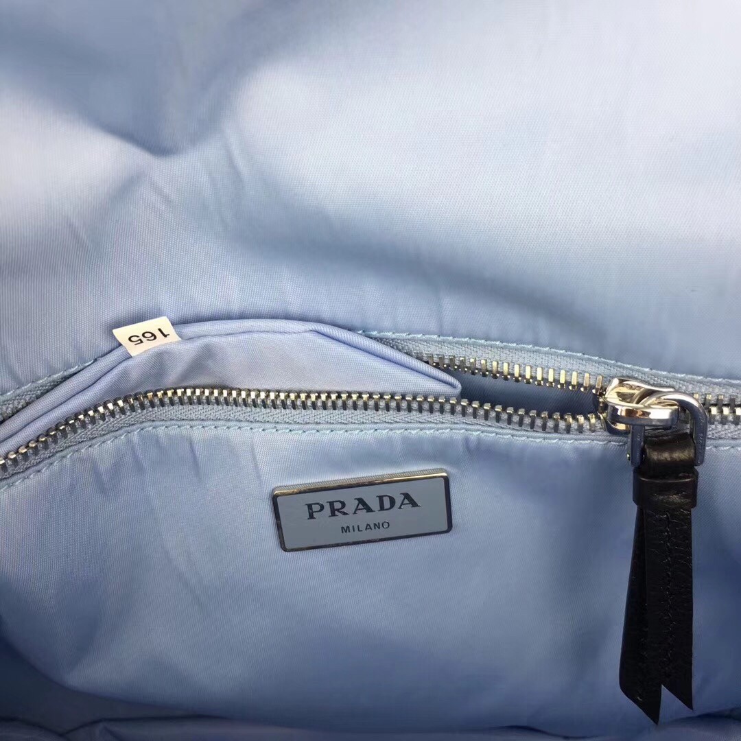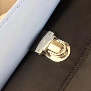 – Prada Etiquette logo on leather in a contrasting color