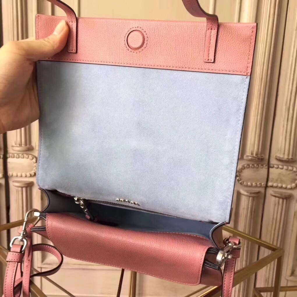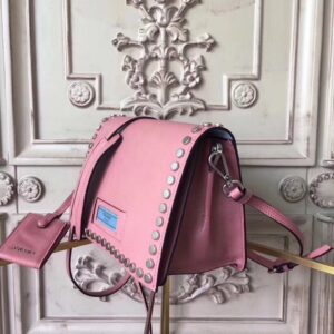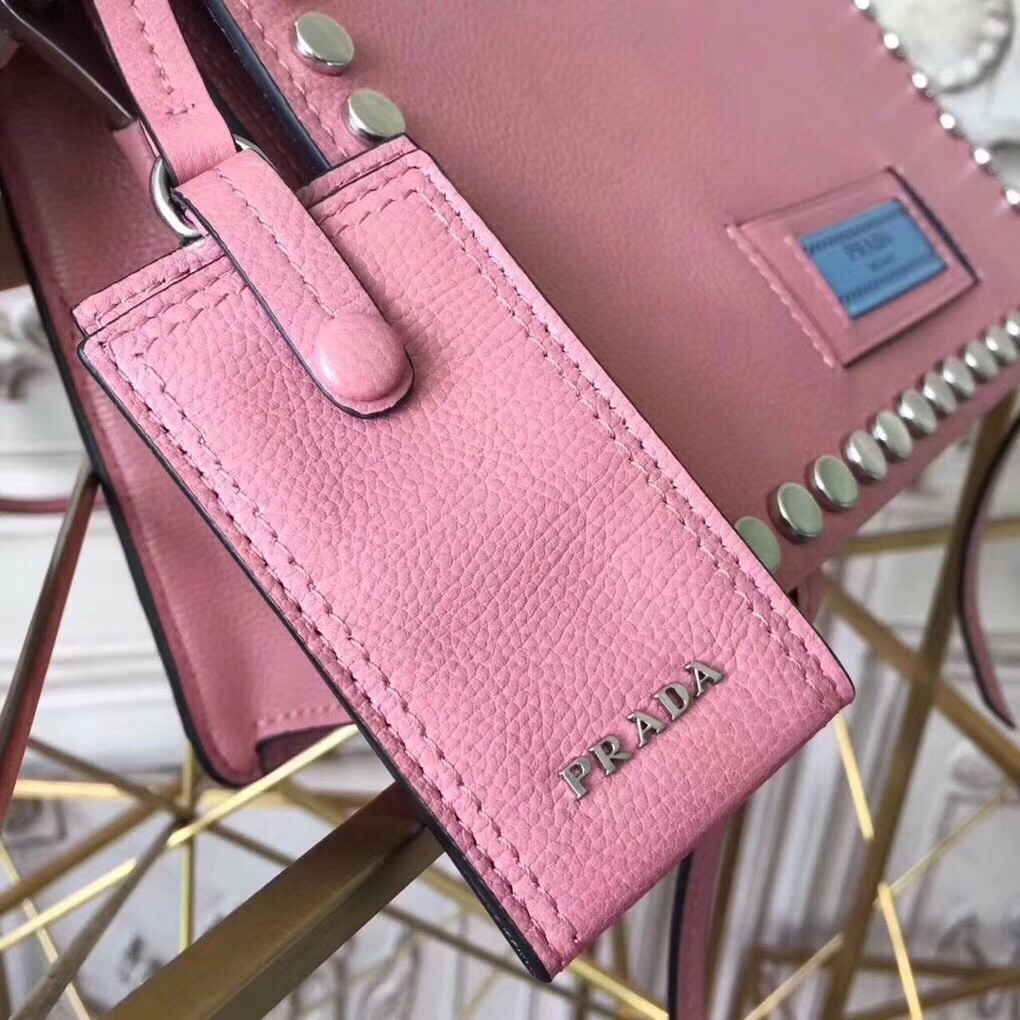 Prada Etiquette Bag In Pink Calfskin With Metal Stud Trim