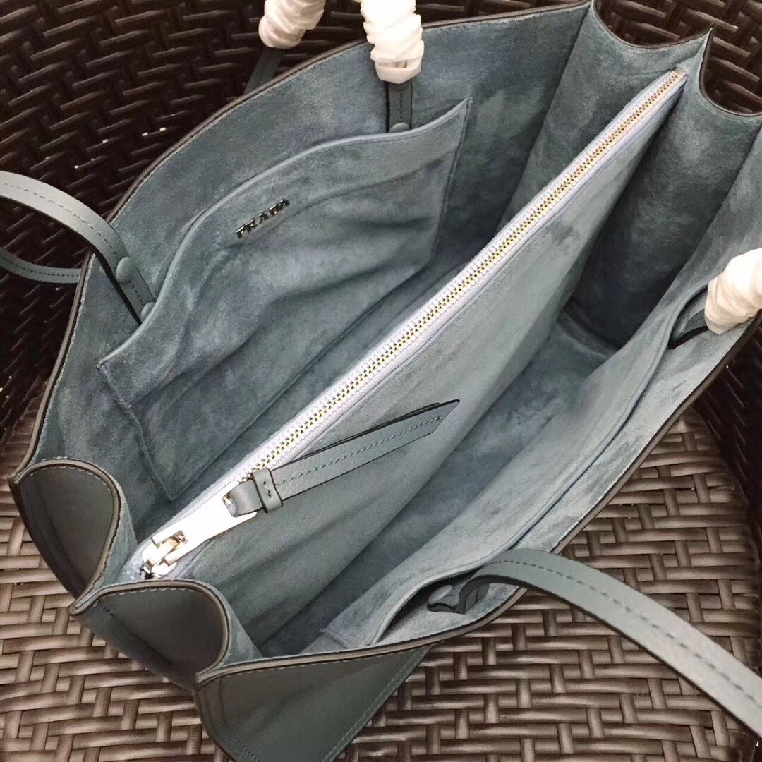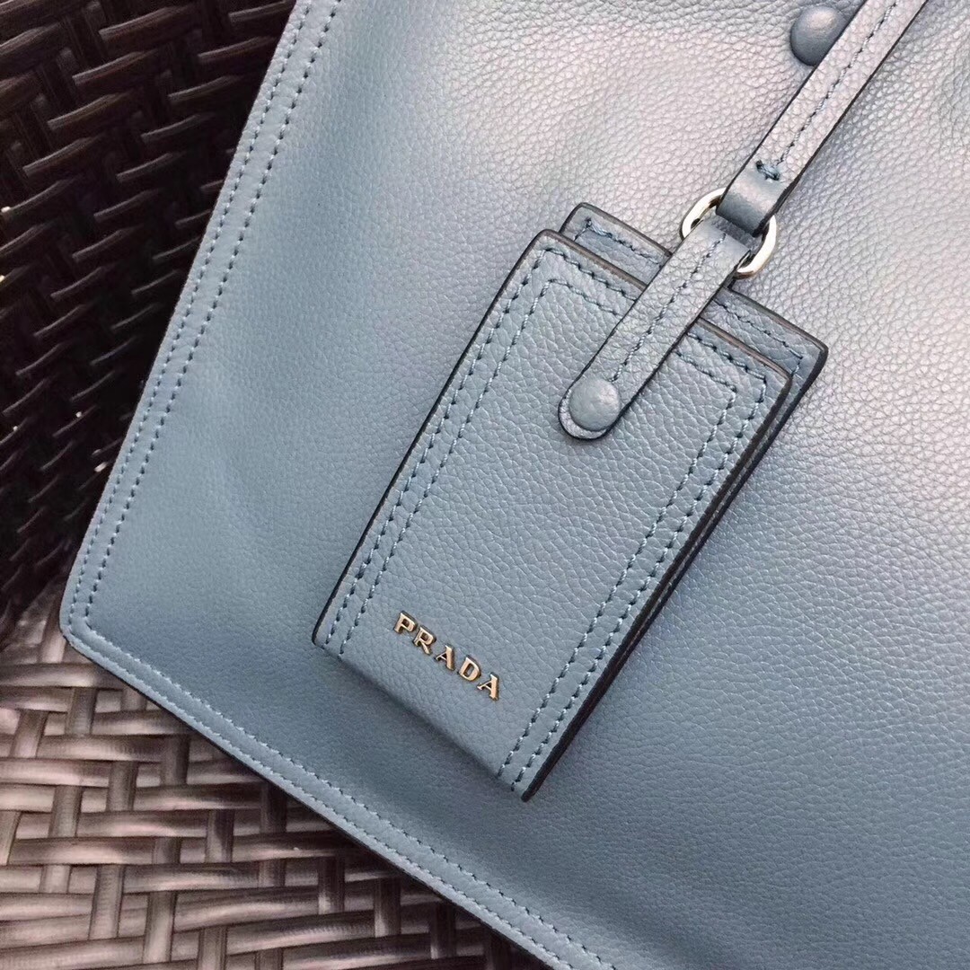 Prada Etiquette Tote Bag In Blue Calf Leather