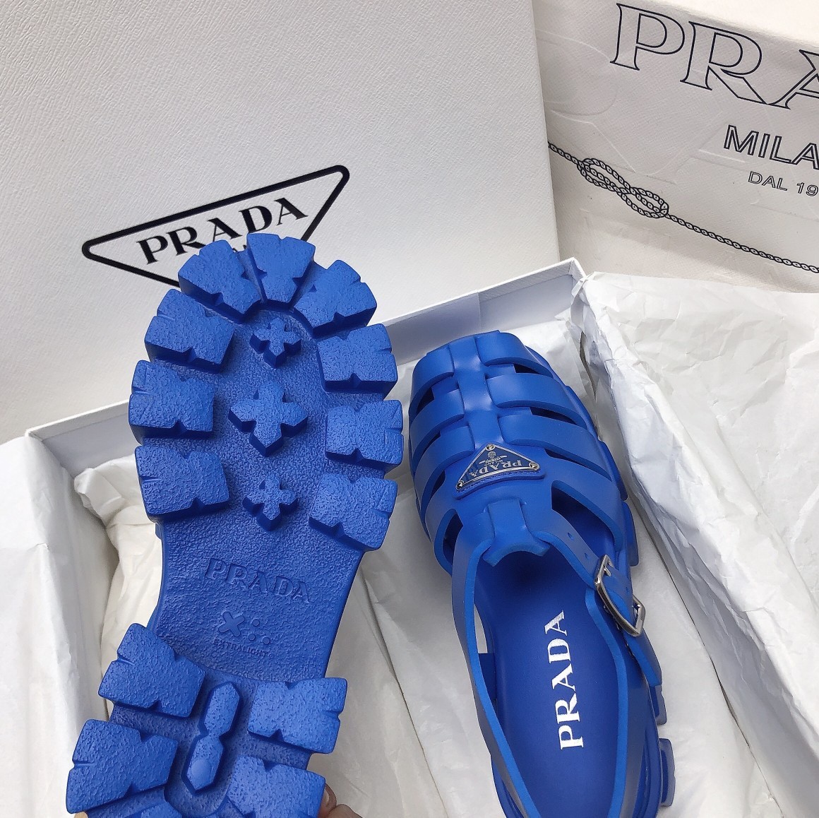 Prada Foam Sandals in Blue Rubber