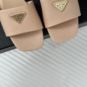 Prada Heeled Sandals 35mm in Beige Saffiano Leather