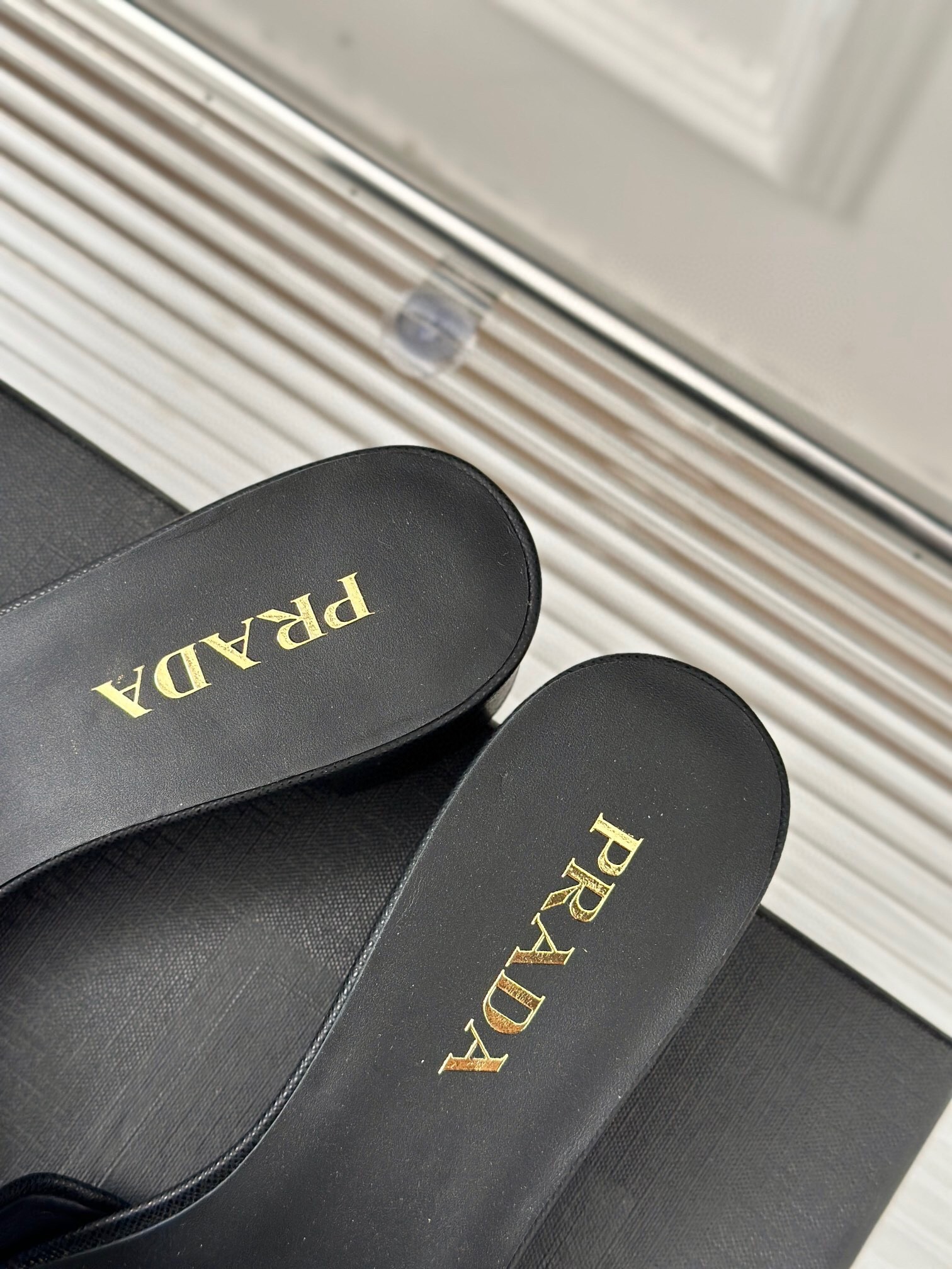 – Leather sole with metal lettering logo