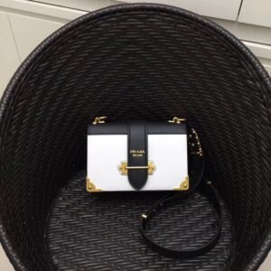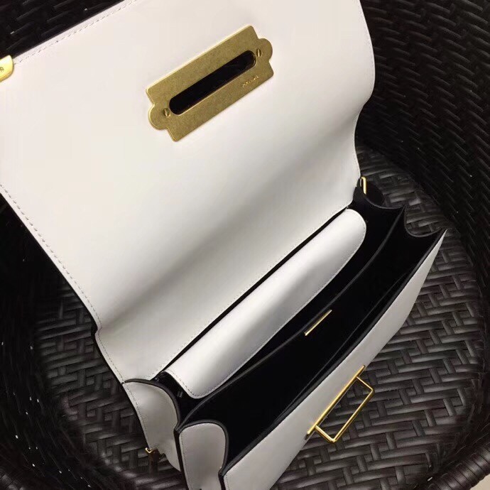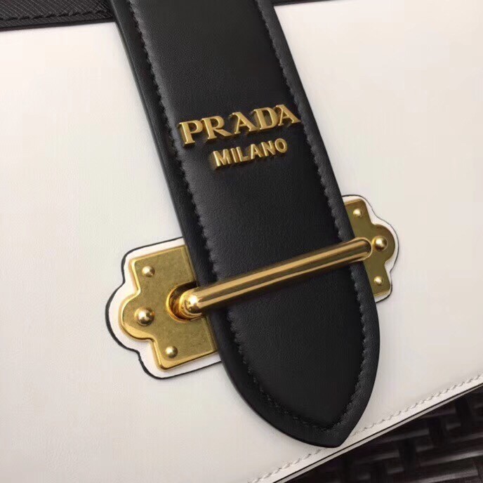 Prada Large Cahier Bag In White/Black Leather