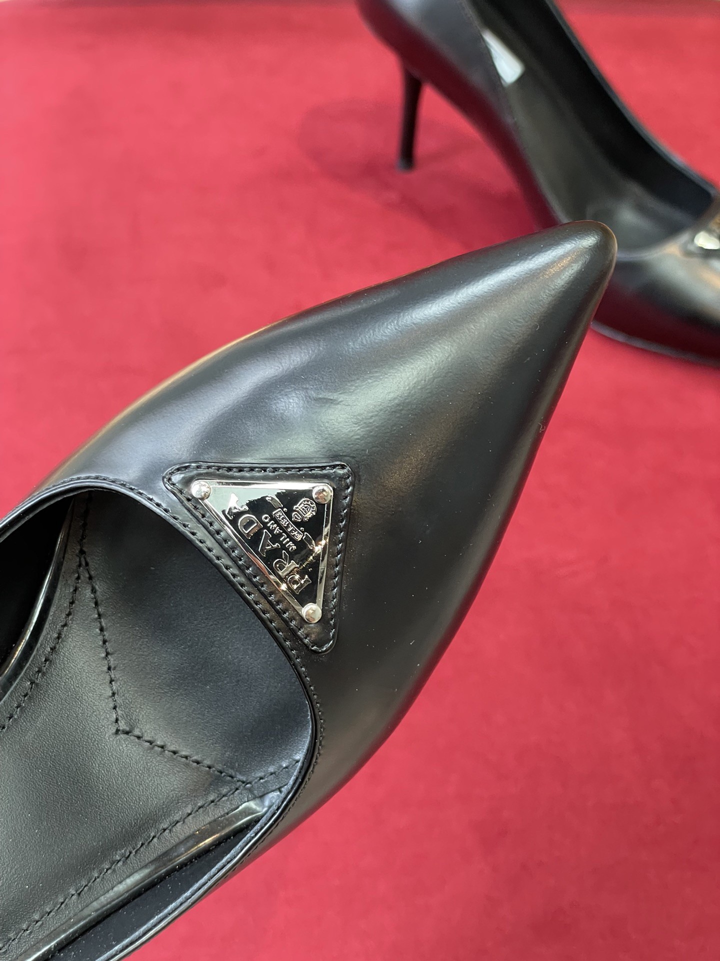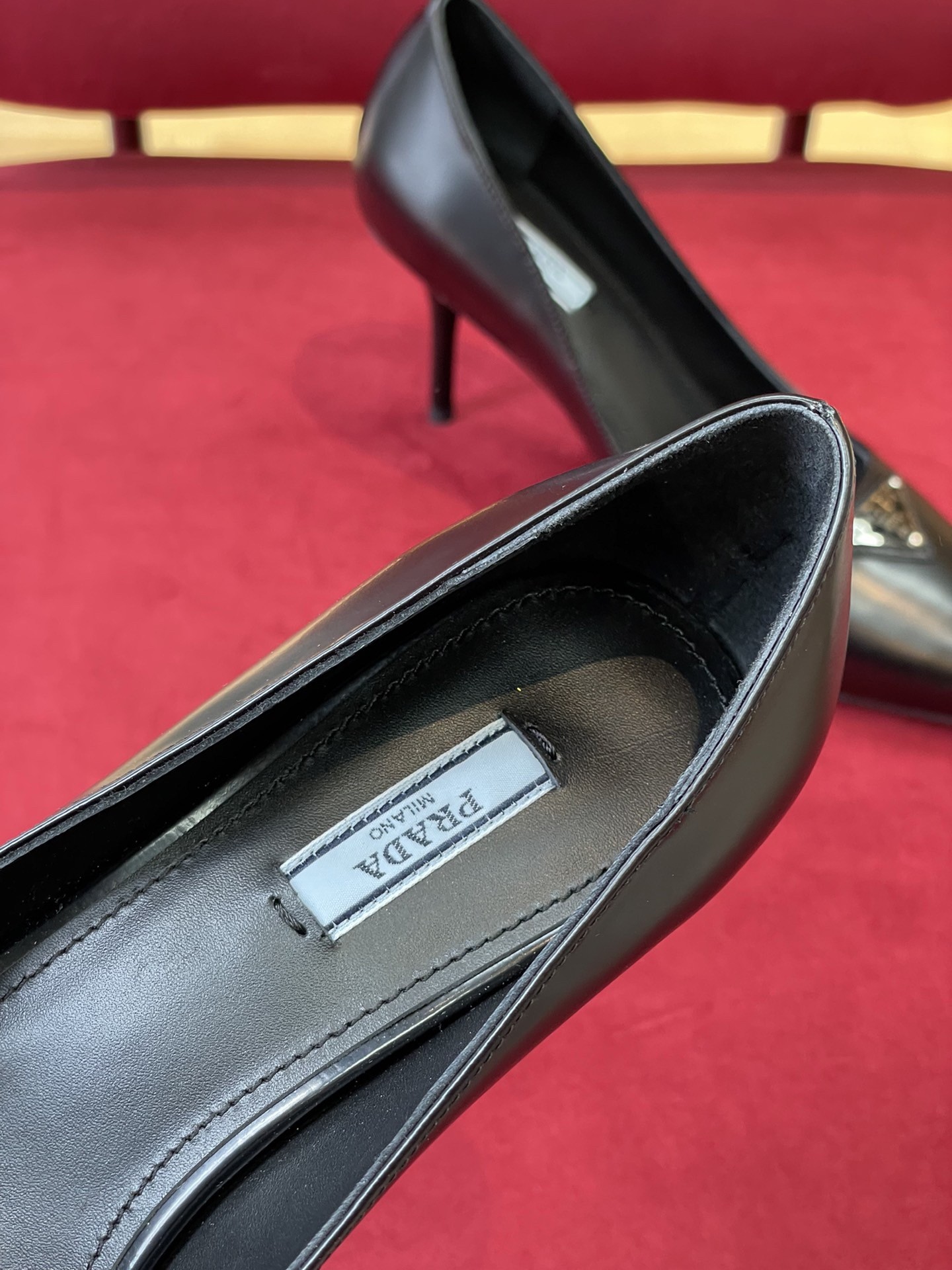 – Leather sole with metal lettering logo