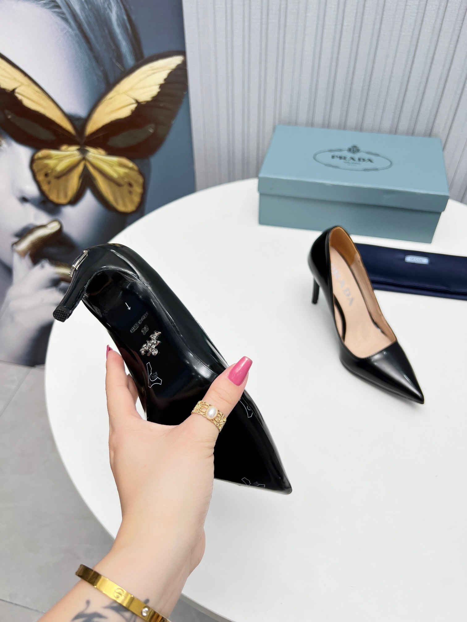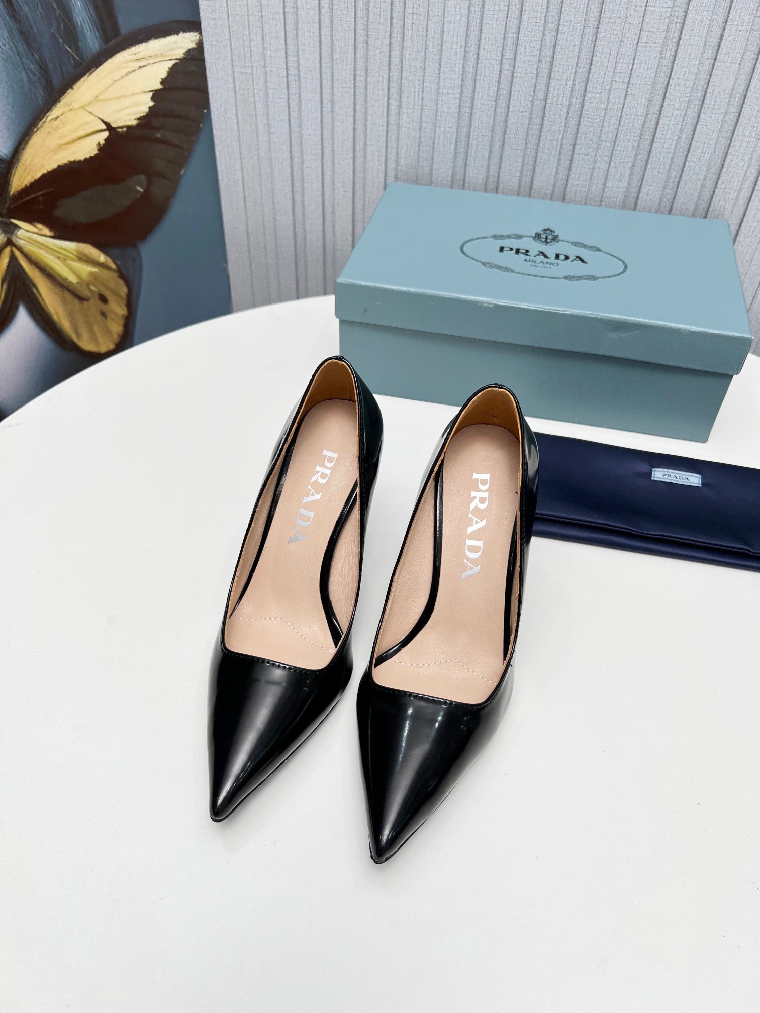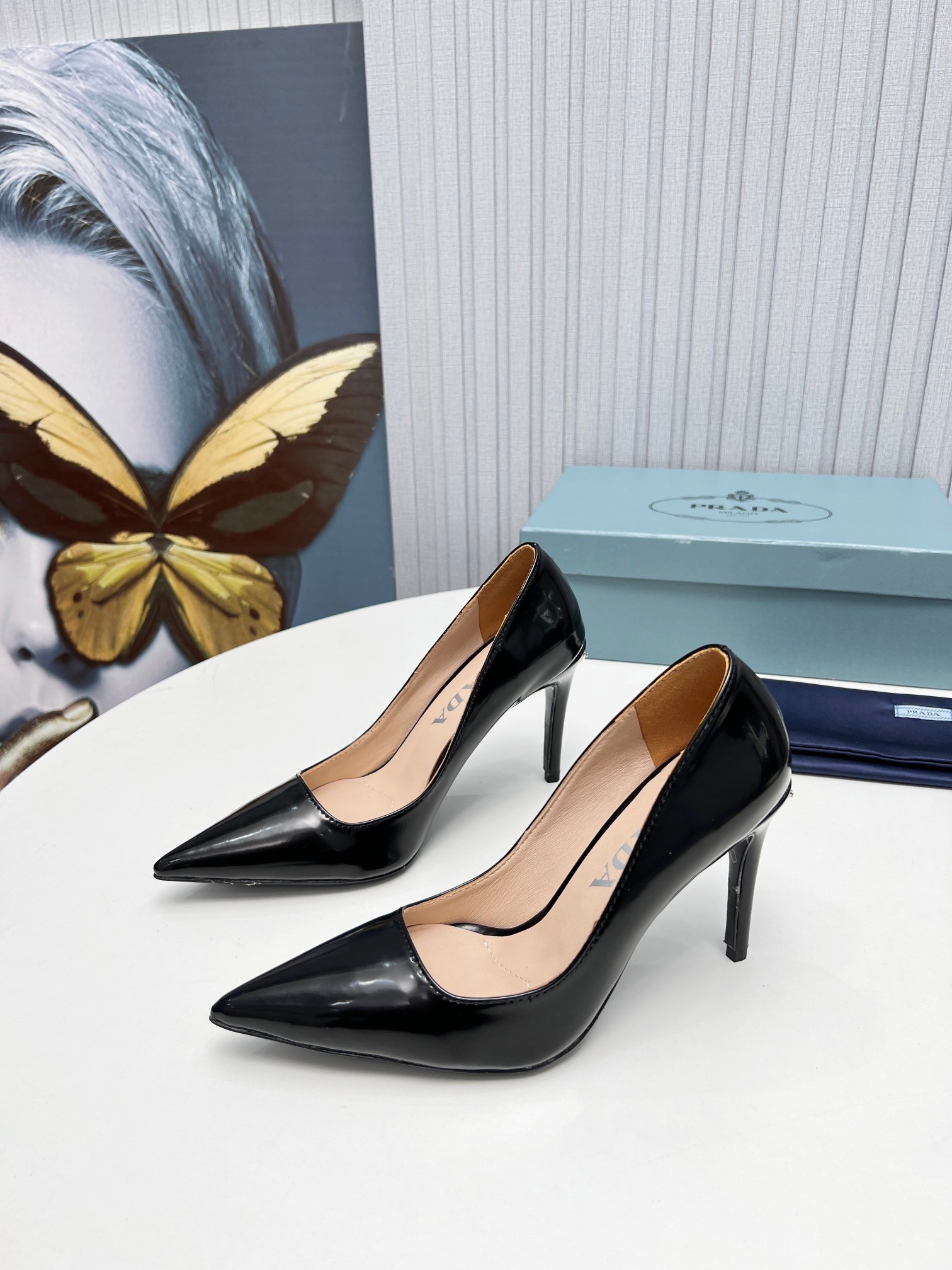 Prada Pumps 95mm in Black Patent Leather
