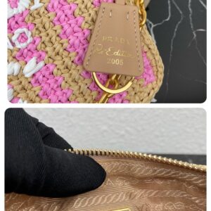 Prada Re-Edition 2005 Bag In Beige and Pink Stripe Raffia