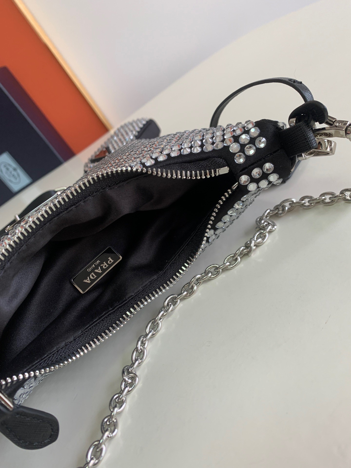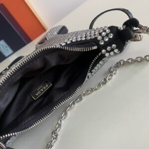 Prada Re-Edition 2005 Bag In Black Satin with Crystals