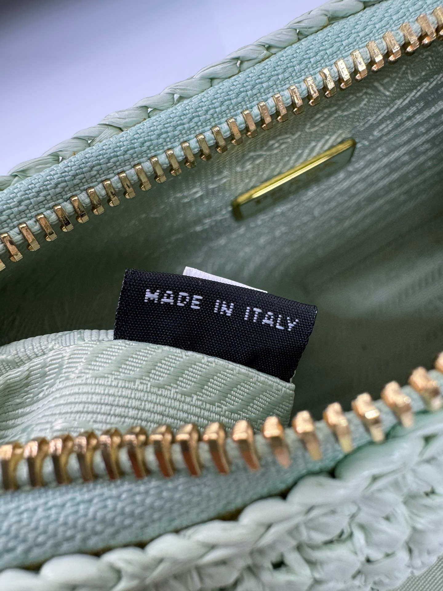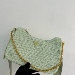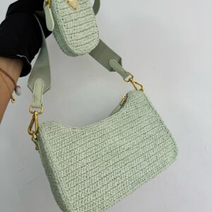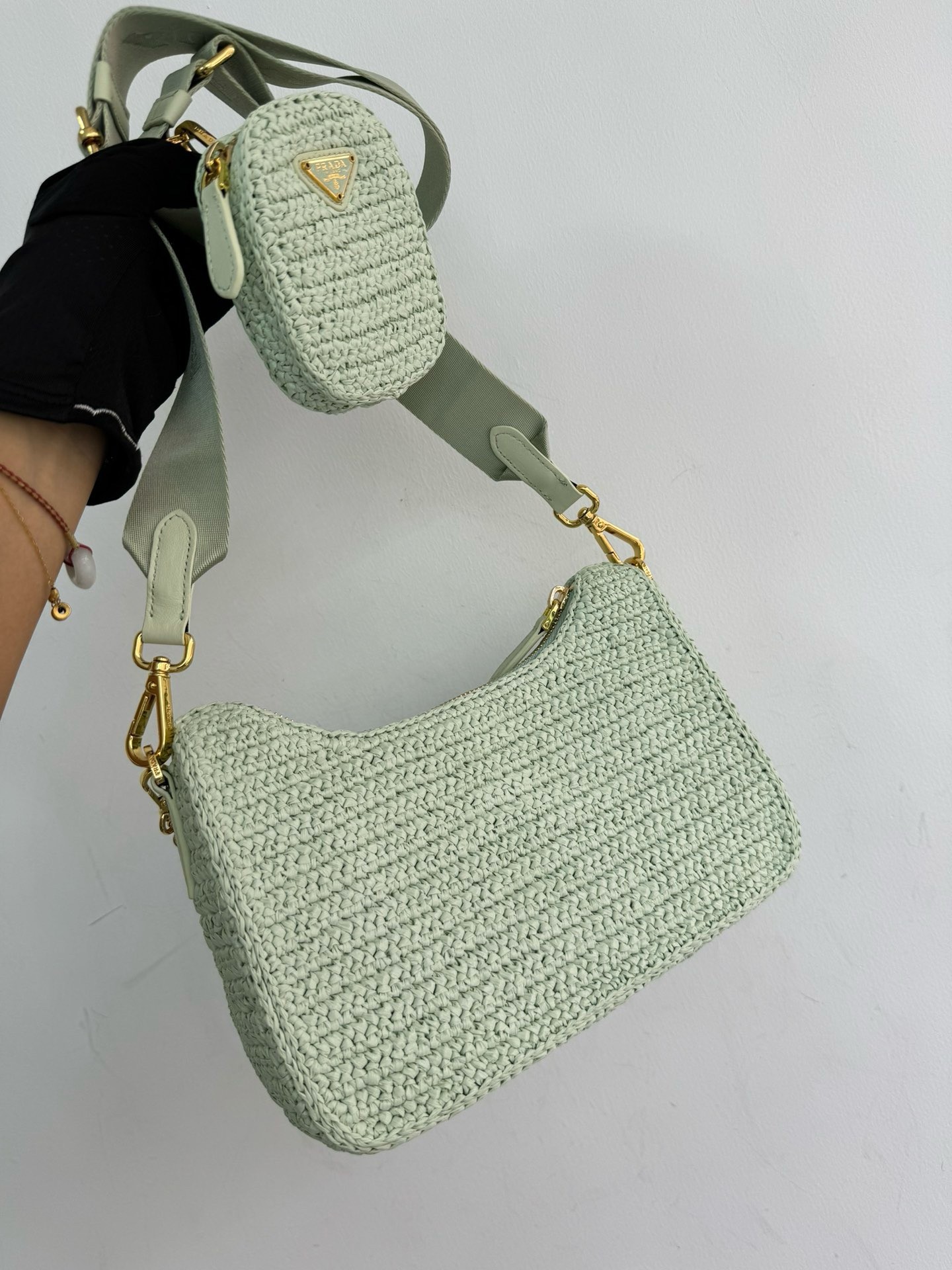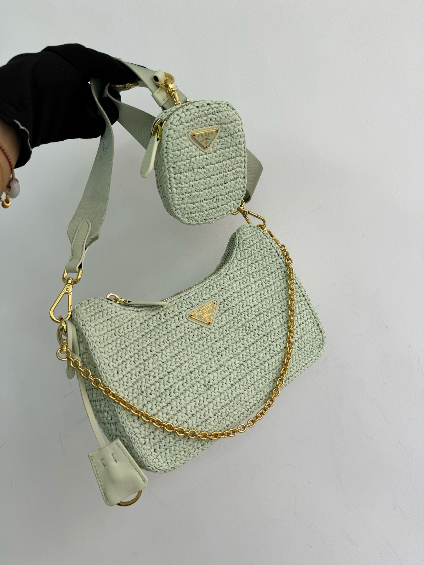 – Removable raffia zipper pouch and Re-Edition keychain