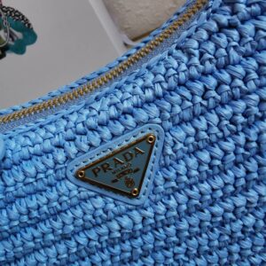 Prada Re-Edition 2005 Shoulder Bag In Blue Raffia