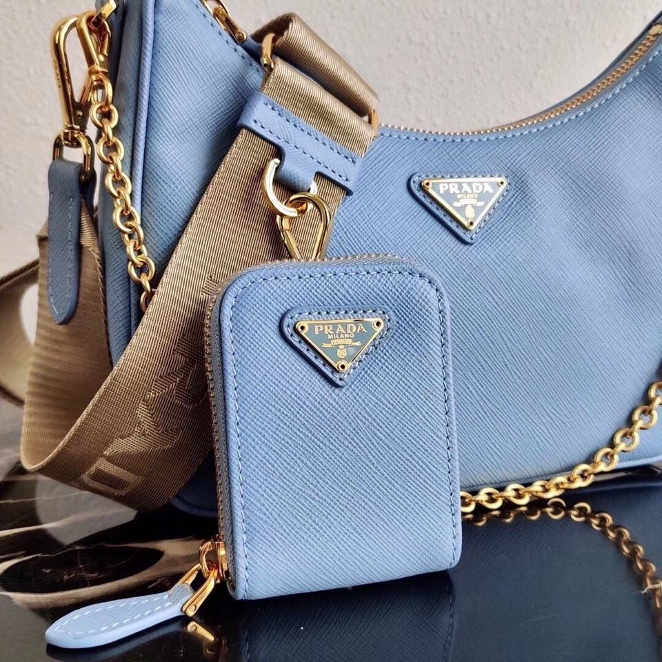 Prada Re-Edition 2005 Shoulder Bag In Blue Saffiano Leather