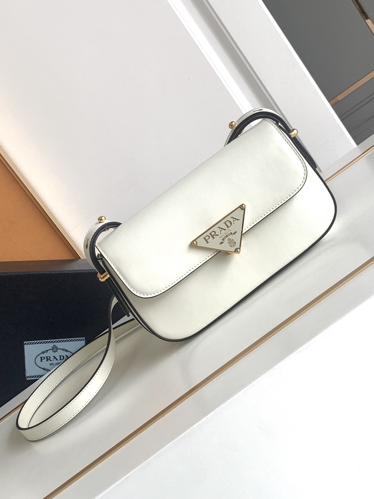 Prada Shoulder Bag in White Smooth Calfskin