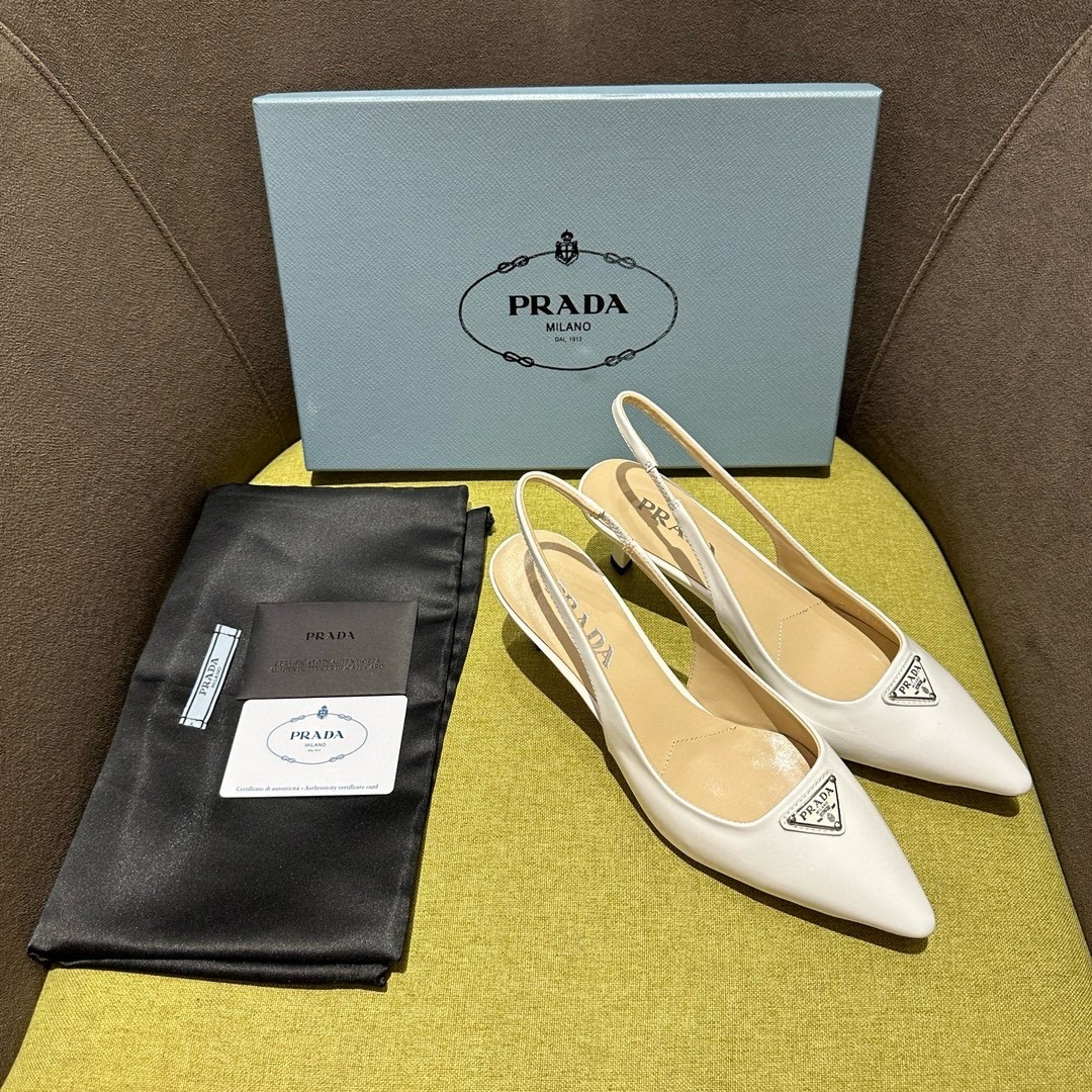 Prada Slingback Pumps 55mm in White Patent Leather