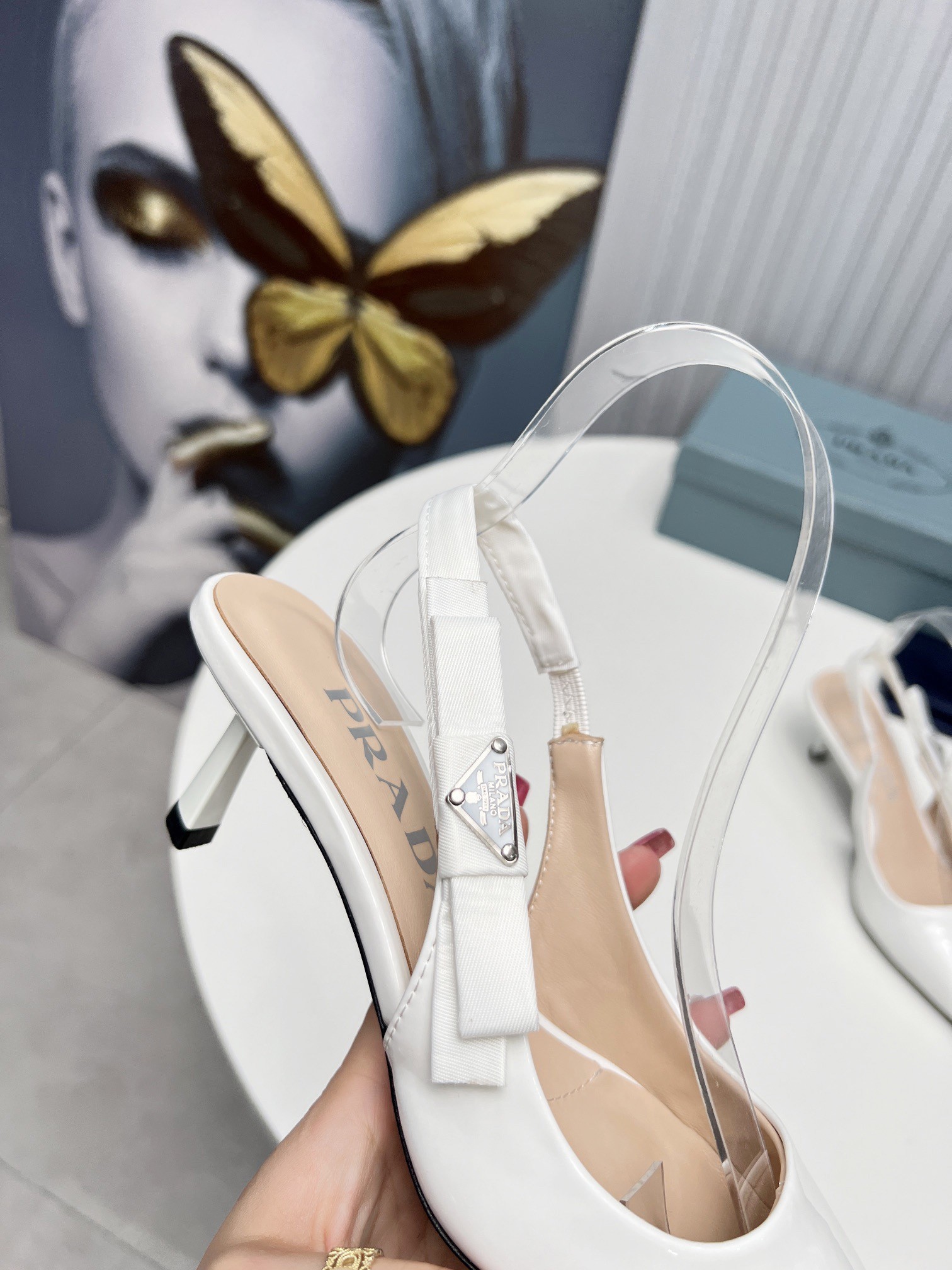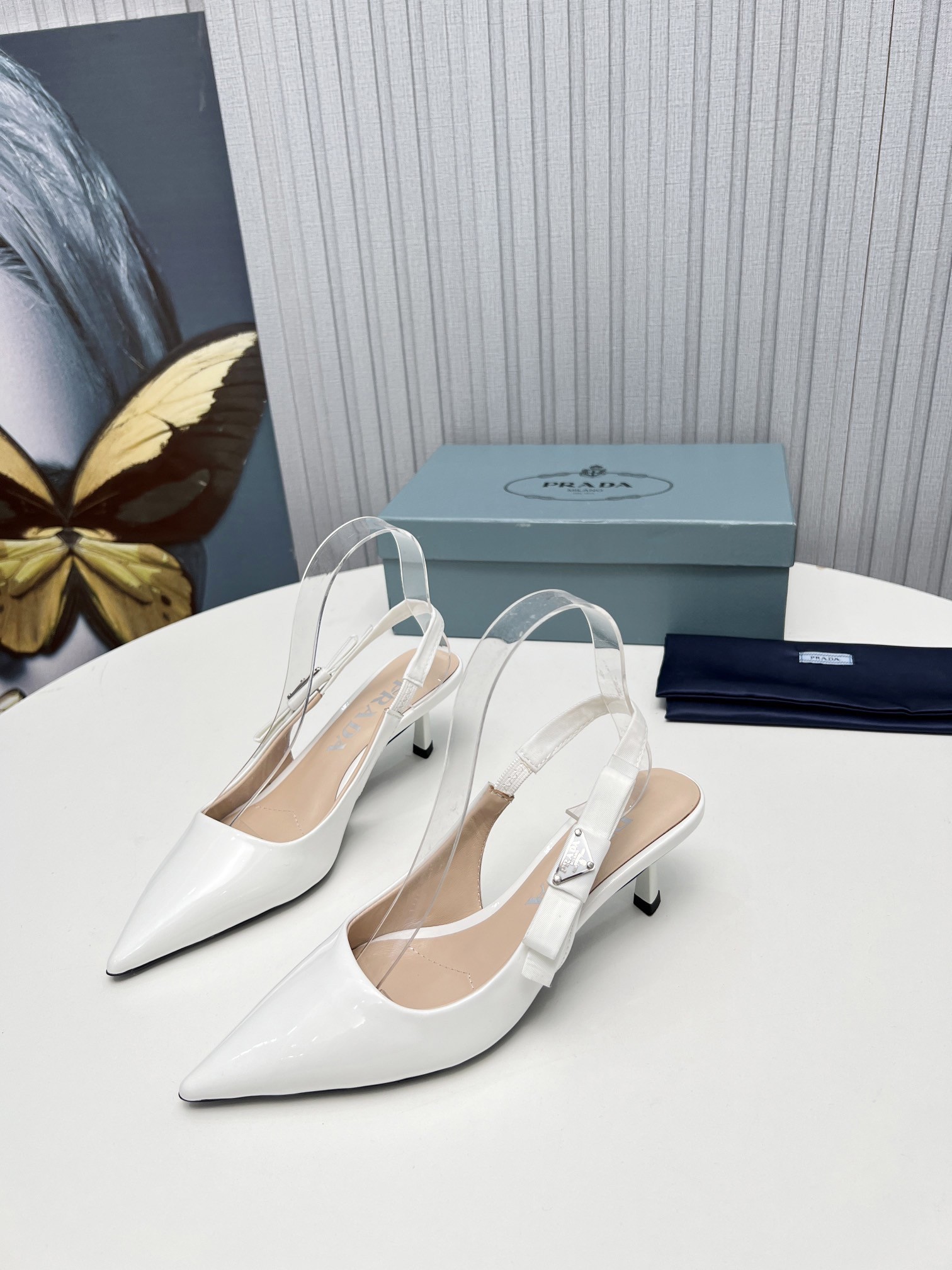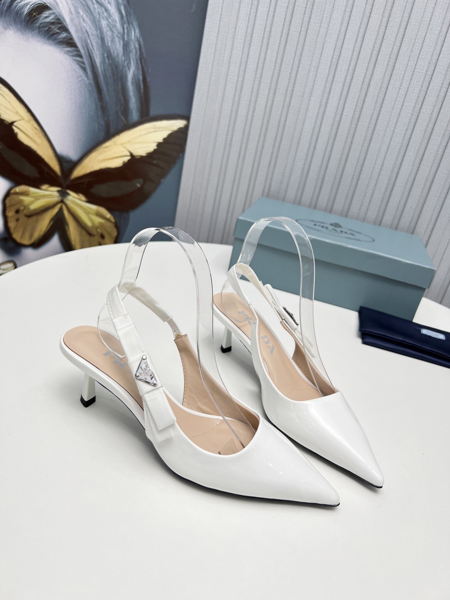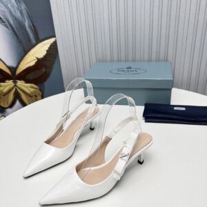 Prada Slingbacks Pumps 45mm In White Patent Leather
