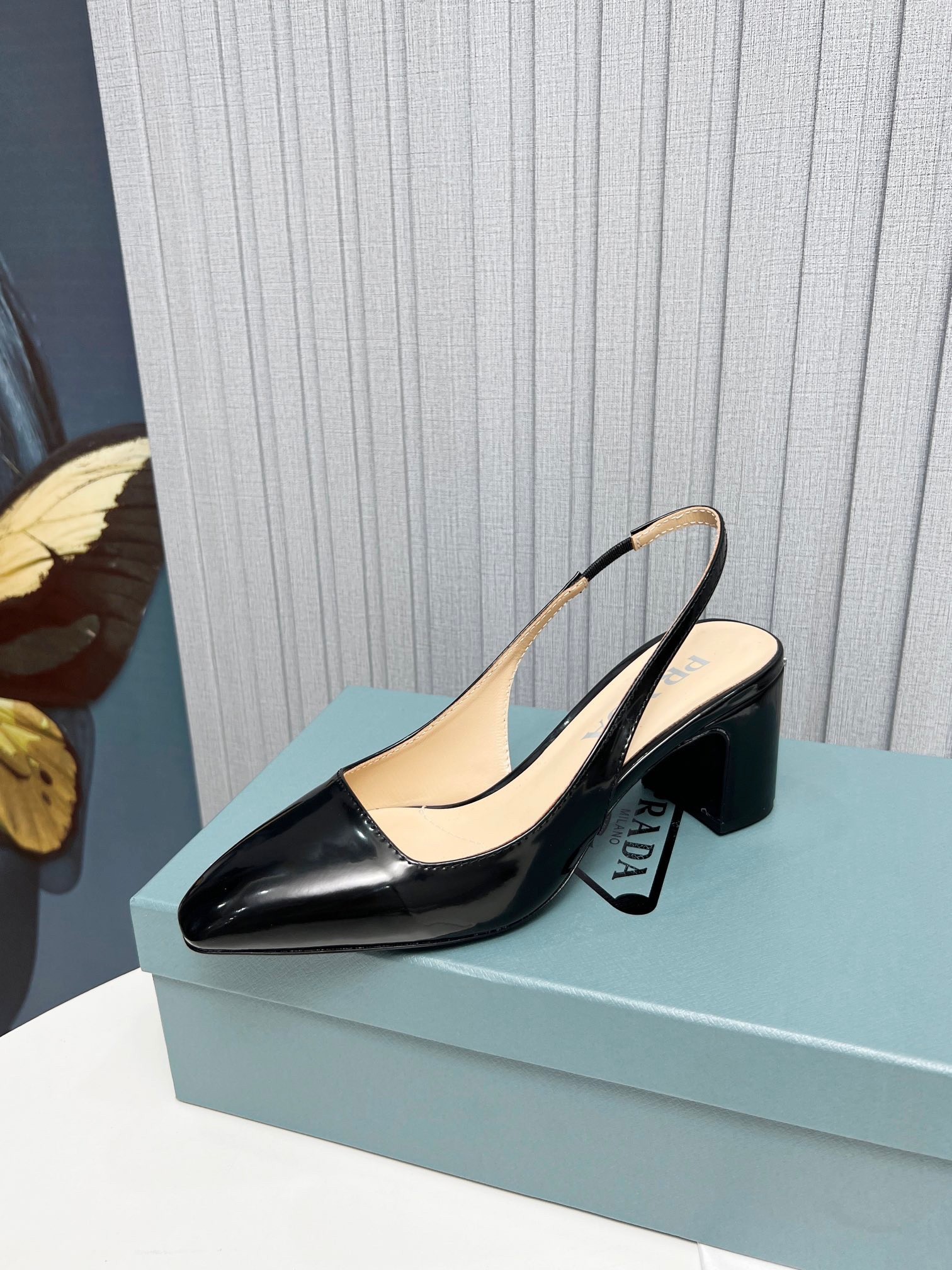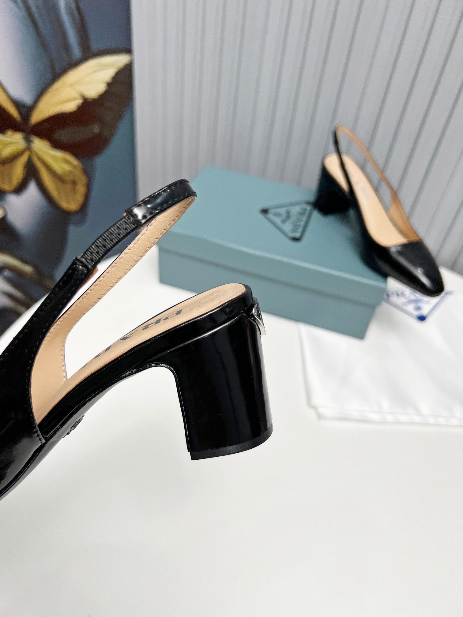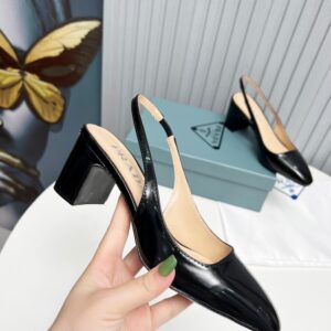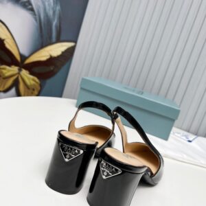 – Leather-covered heel with logo triangle