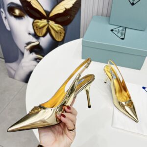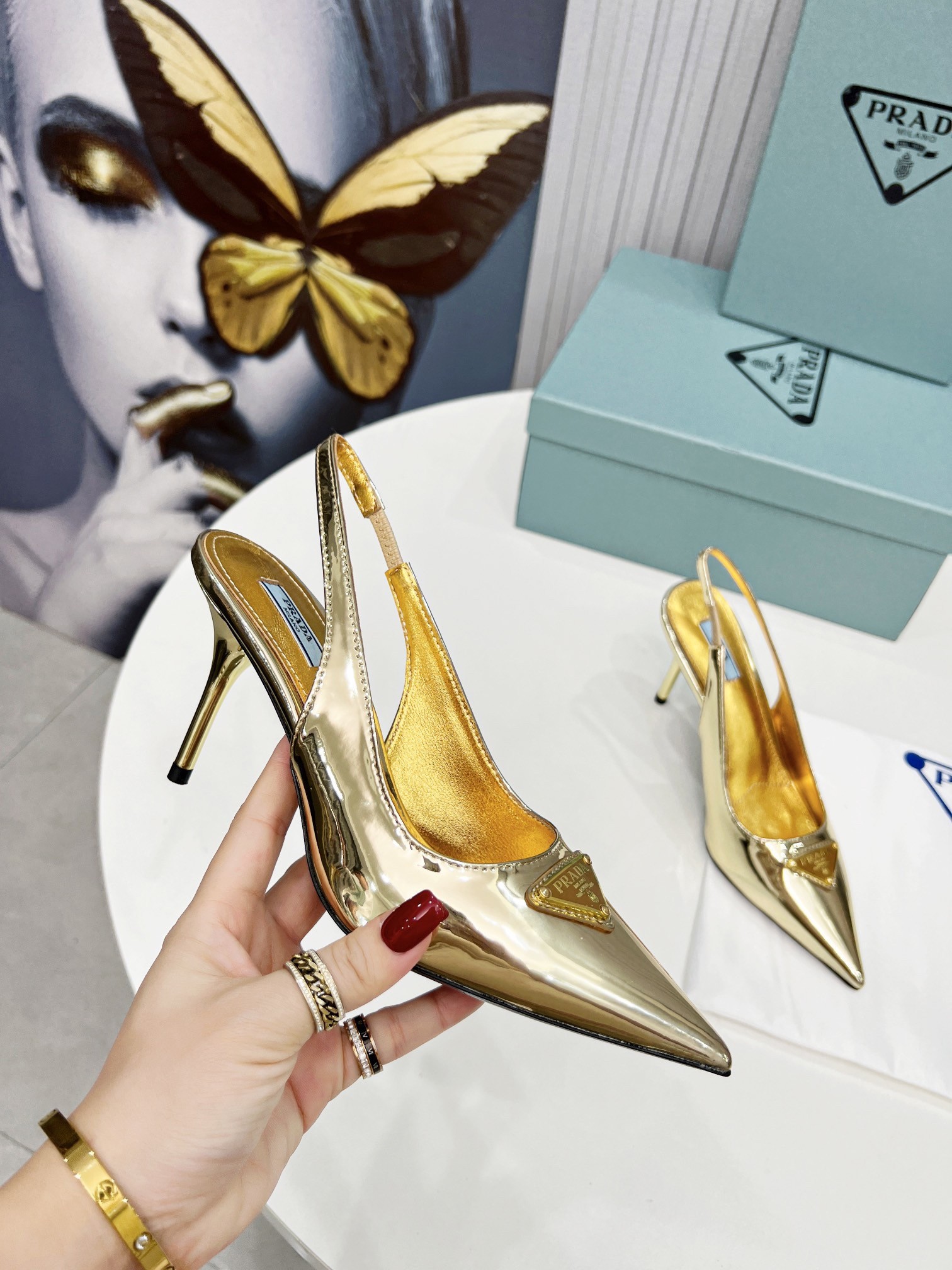 Prada Slingbacks Pumps 85mm In Gold Metallic Leather