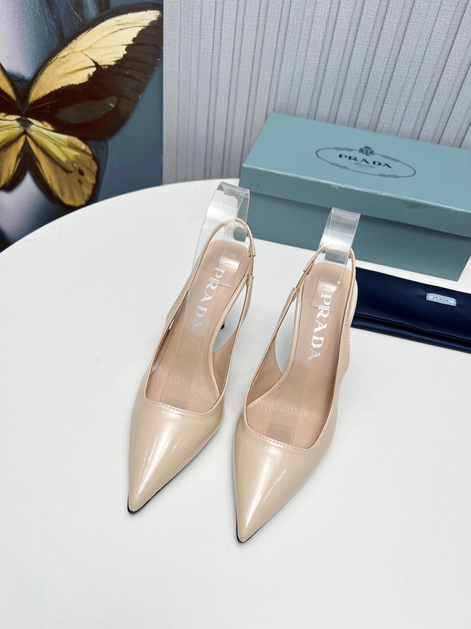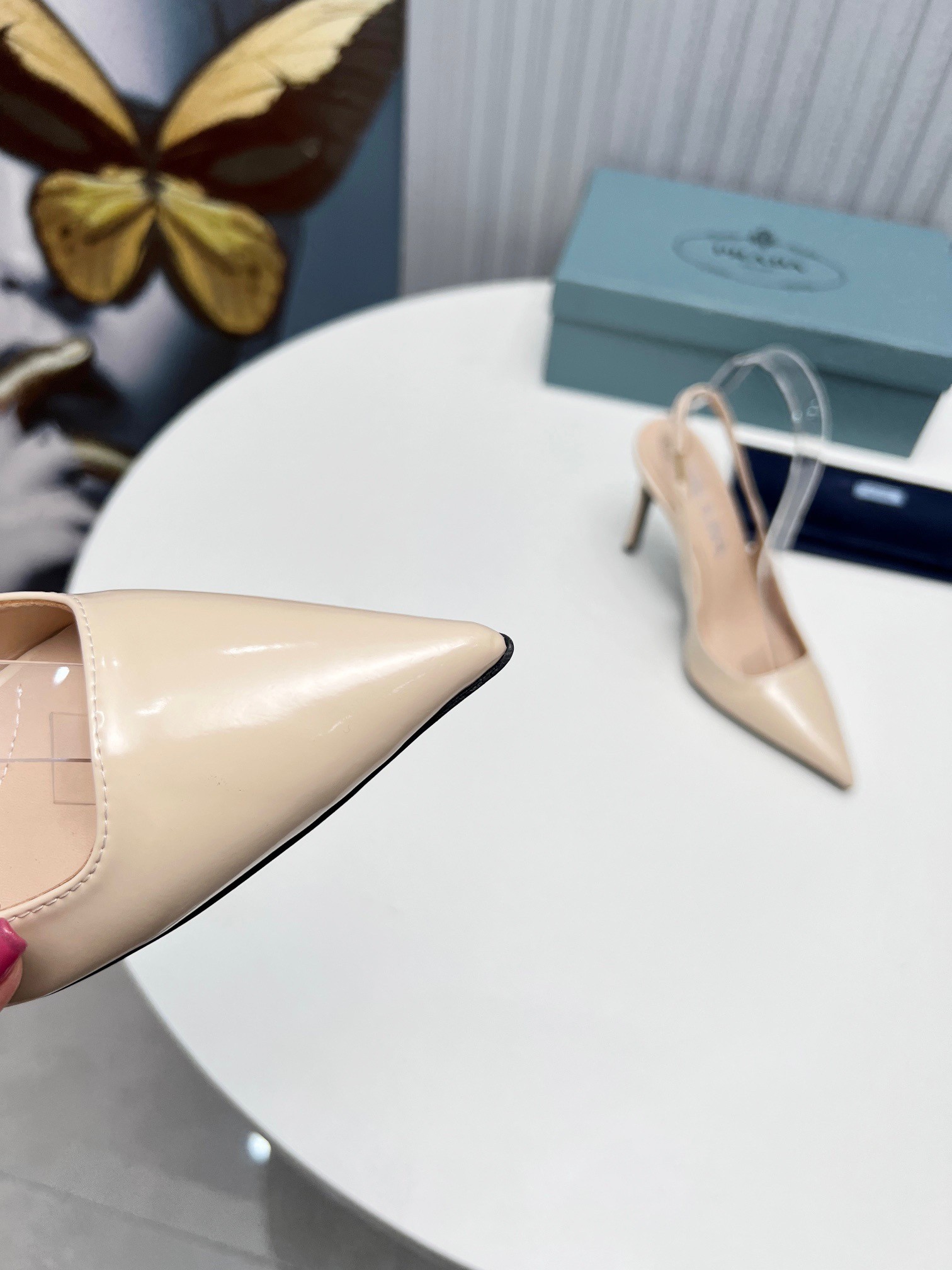 Prada Slingbacks Pumps 95mm In Powder Pink Patent Leather