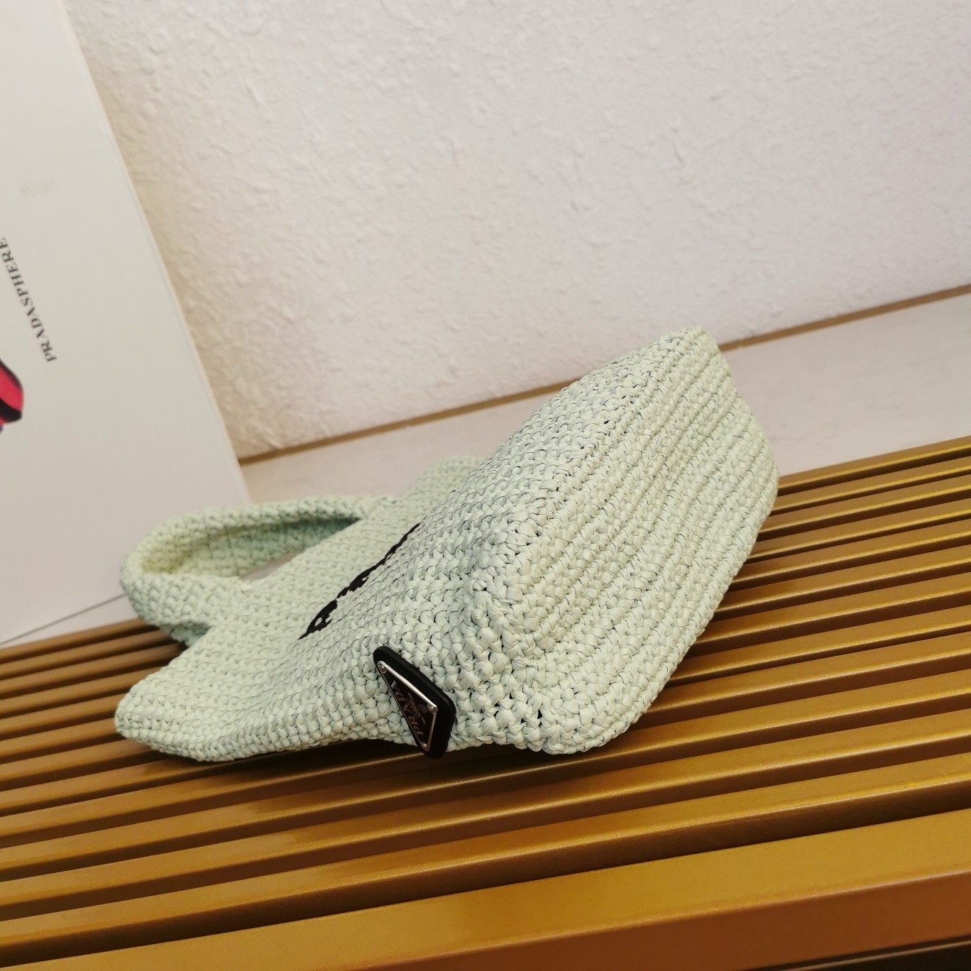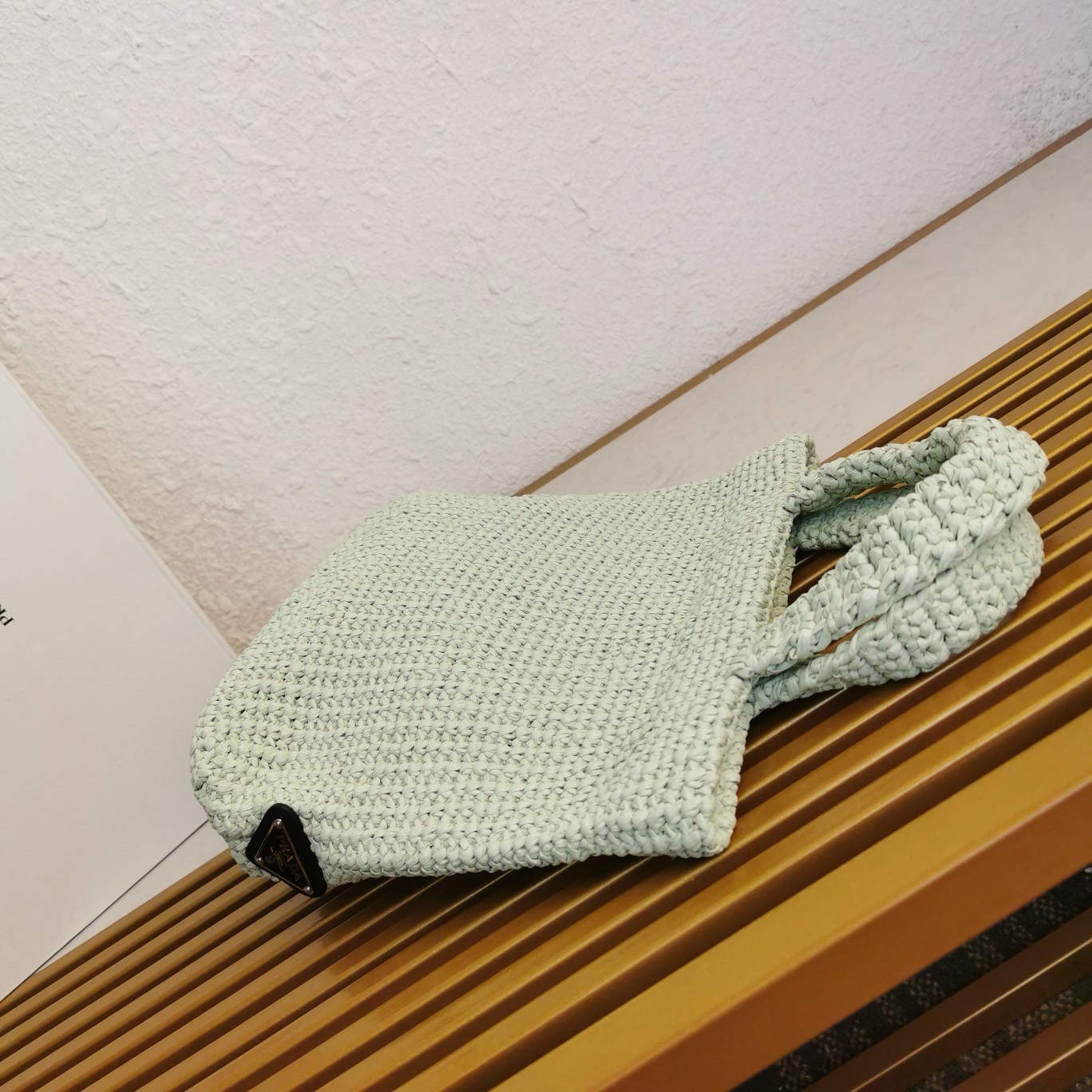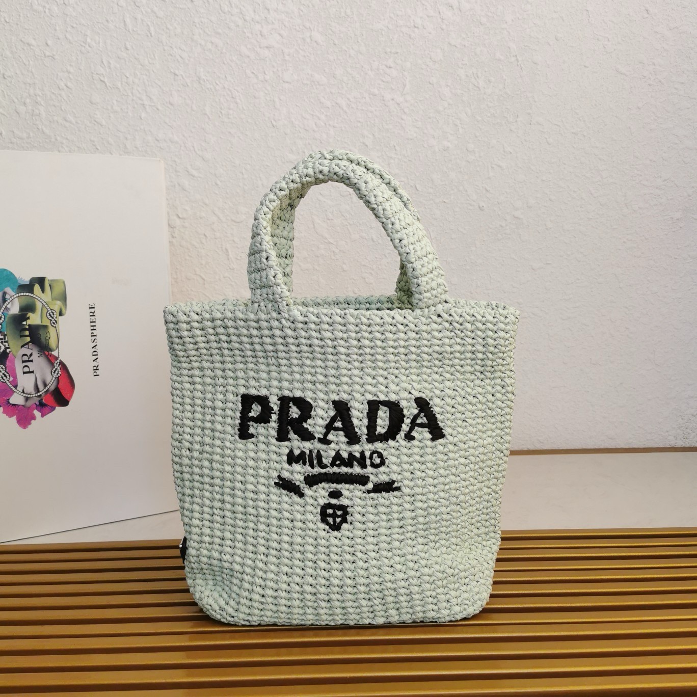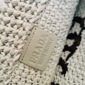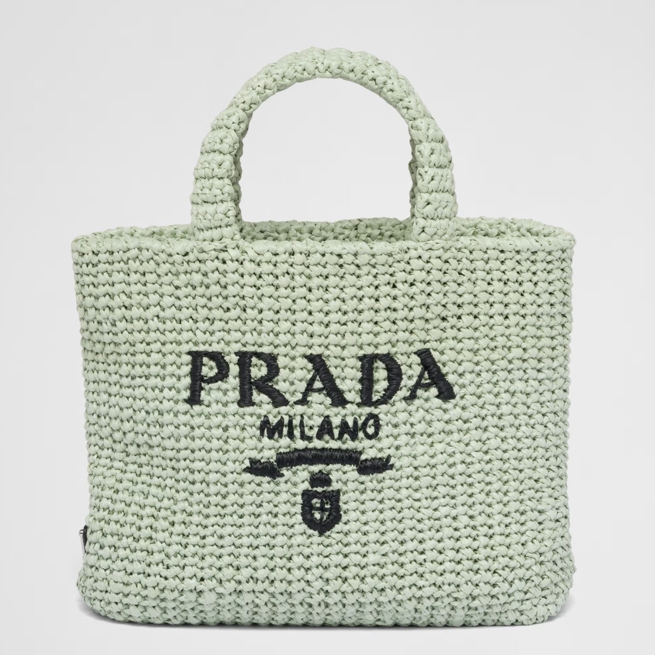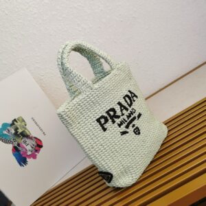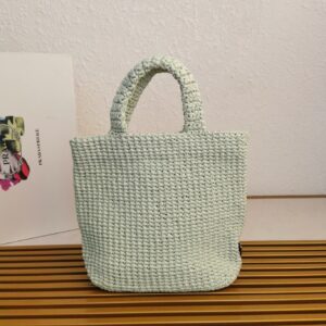 Prada Small Crochet Tote Bag in Aqua Raffia-effect Yarn