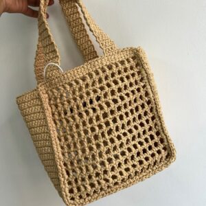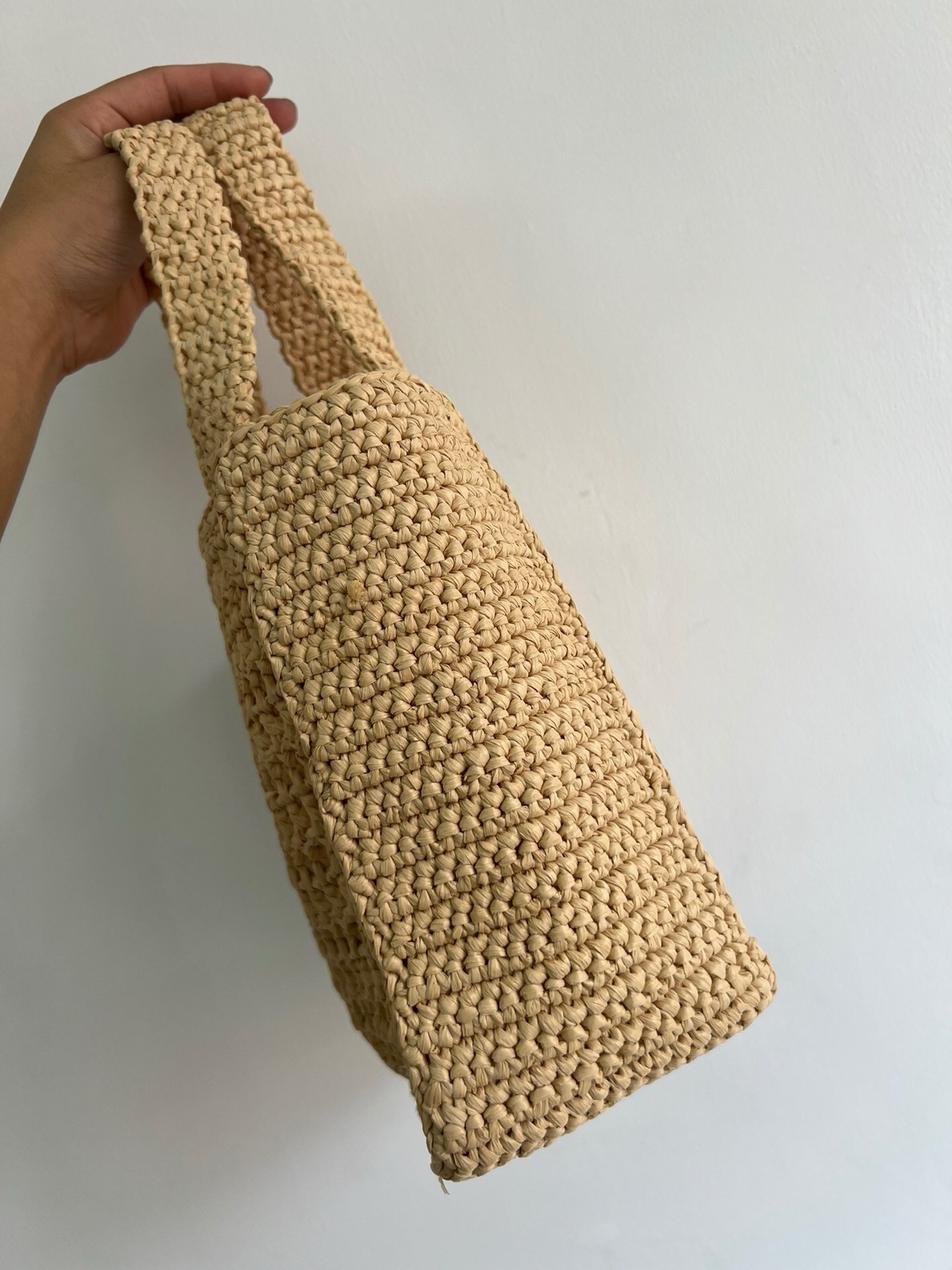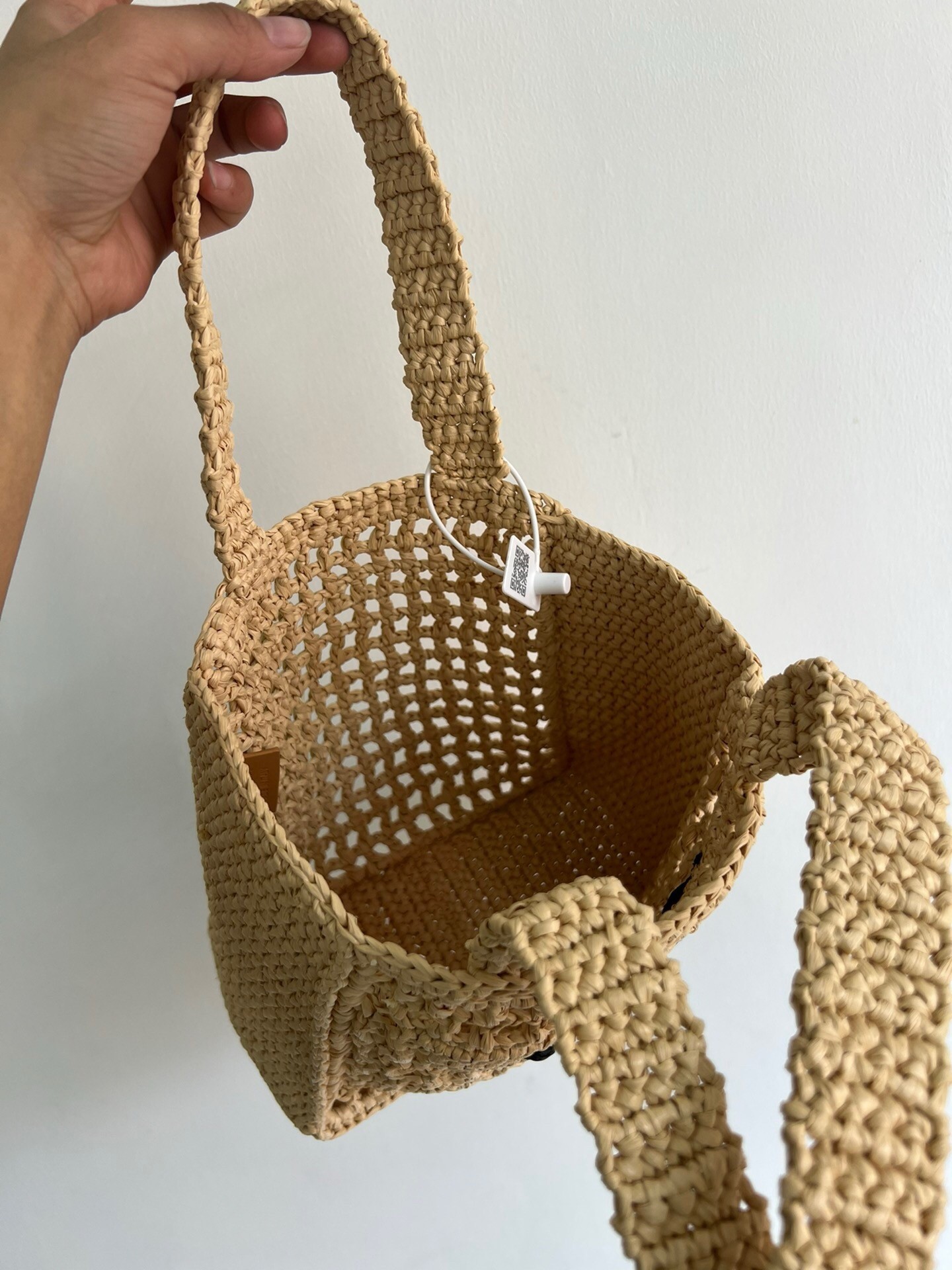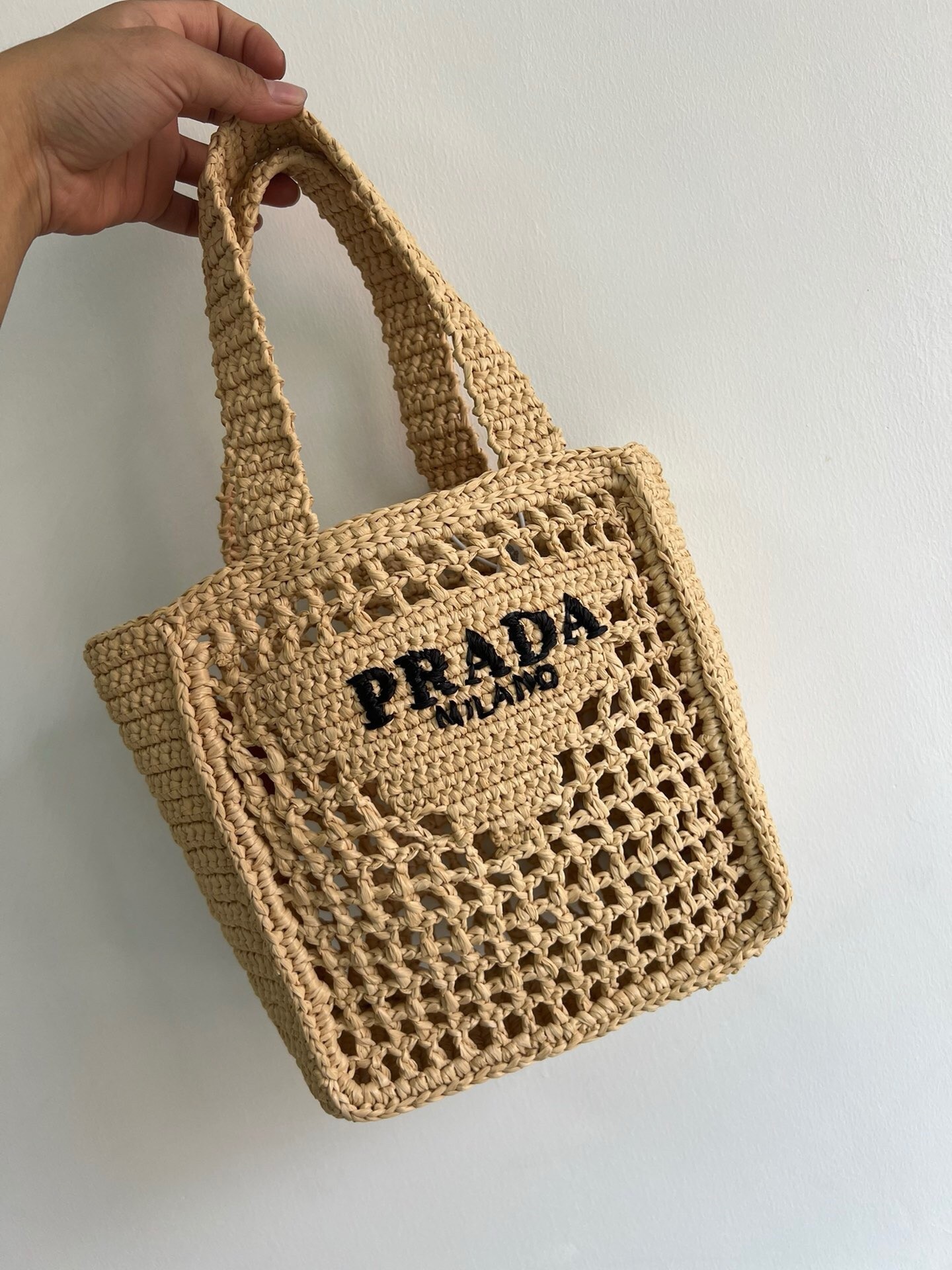 Prada Small Crochet Tote in Beige Raffia-effect Yarn