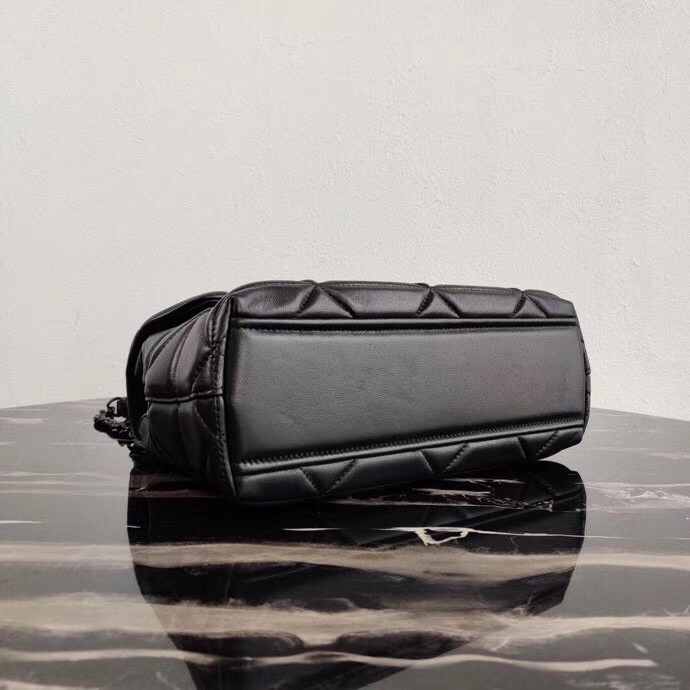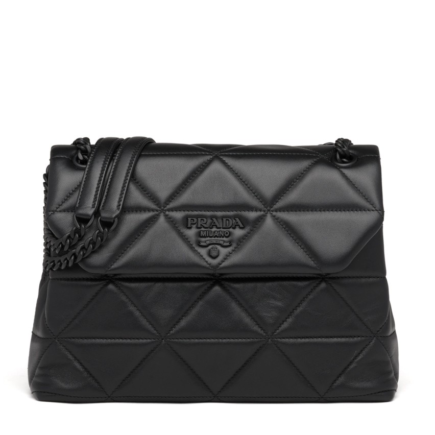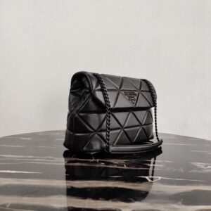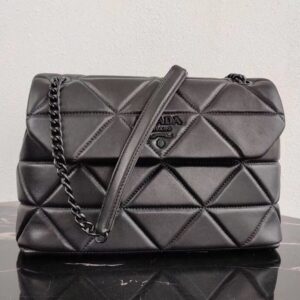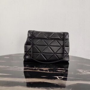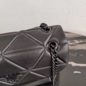 – Sliding tonal metal chain shoulder strap and leather shoulder pad