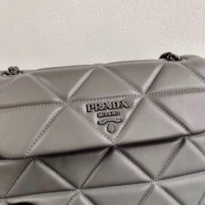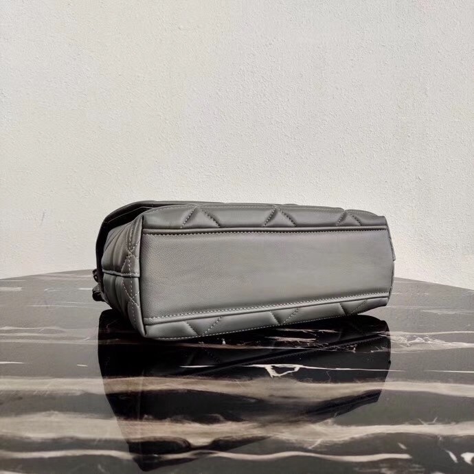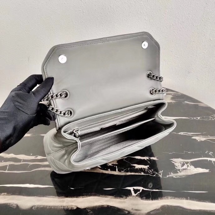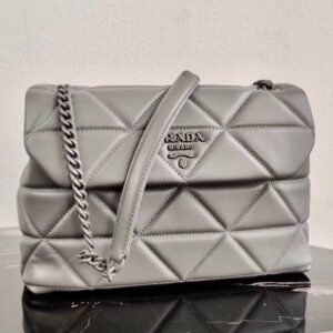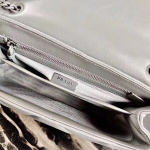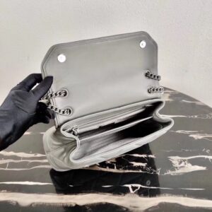 – Sliding tonal metal chain shoulder strap and leather shoulder pad