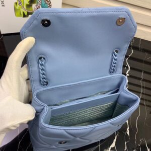 – Sliding tonal metal chain shoulder strap and leather shoulder pad