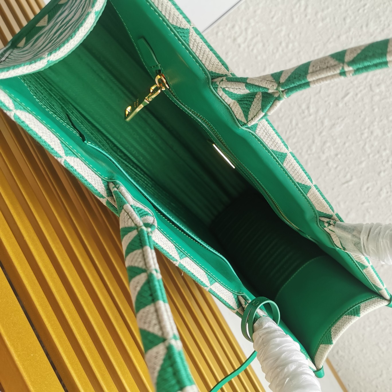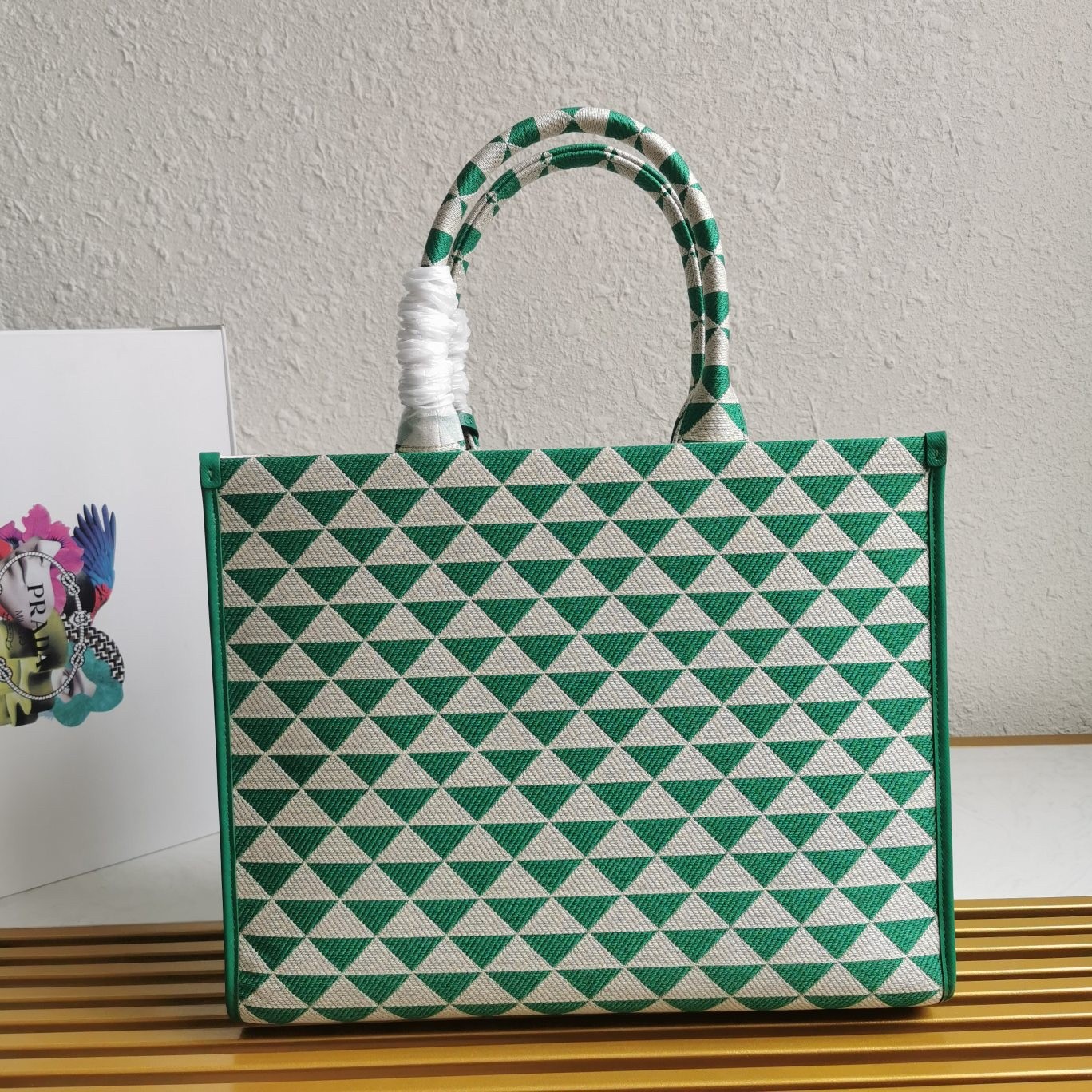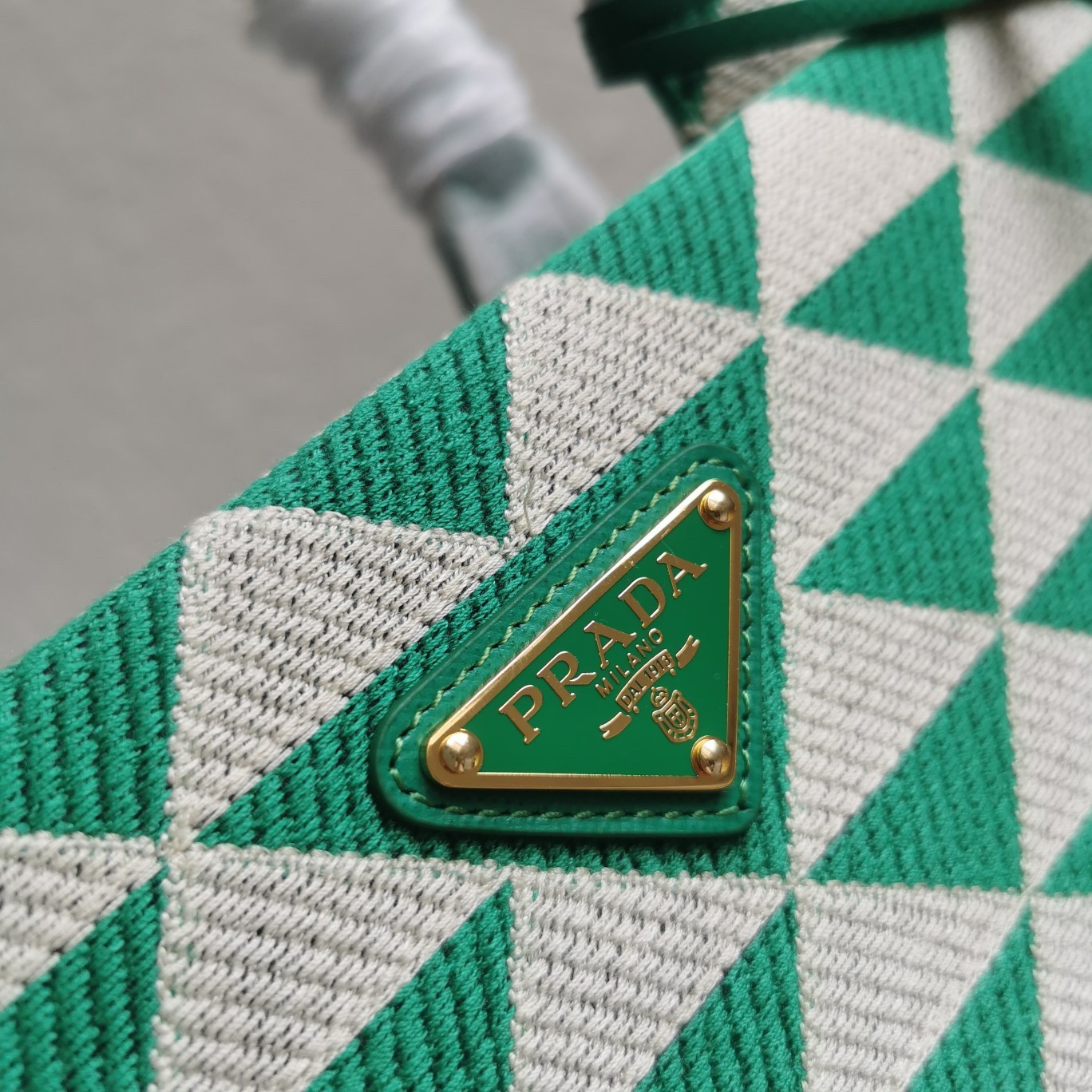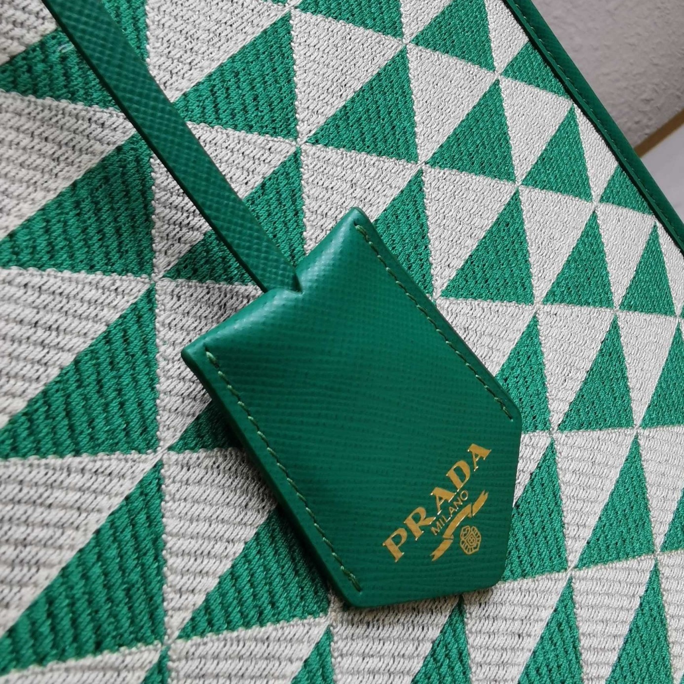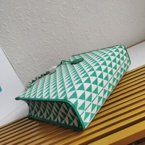 Prada Symbole Large Bag in Green and White Jacquard Fabric