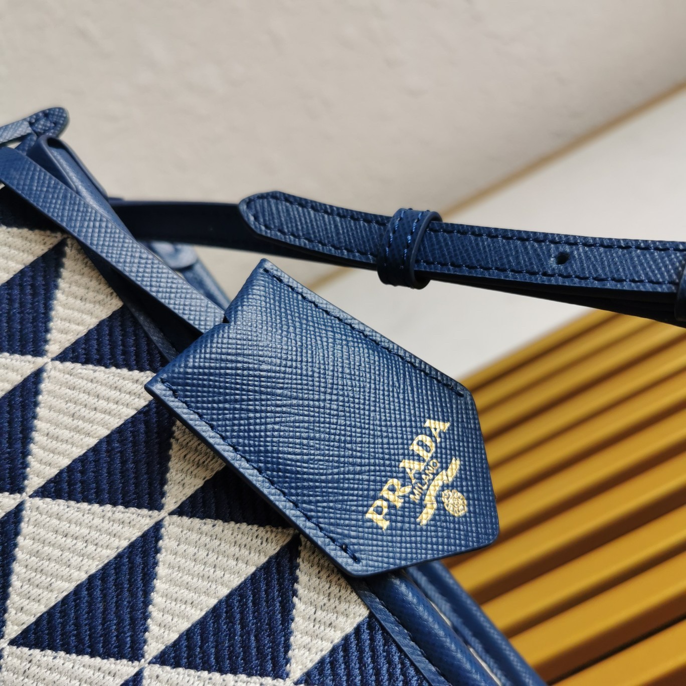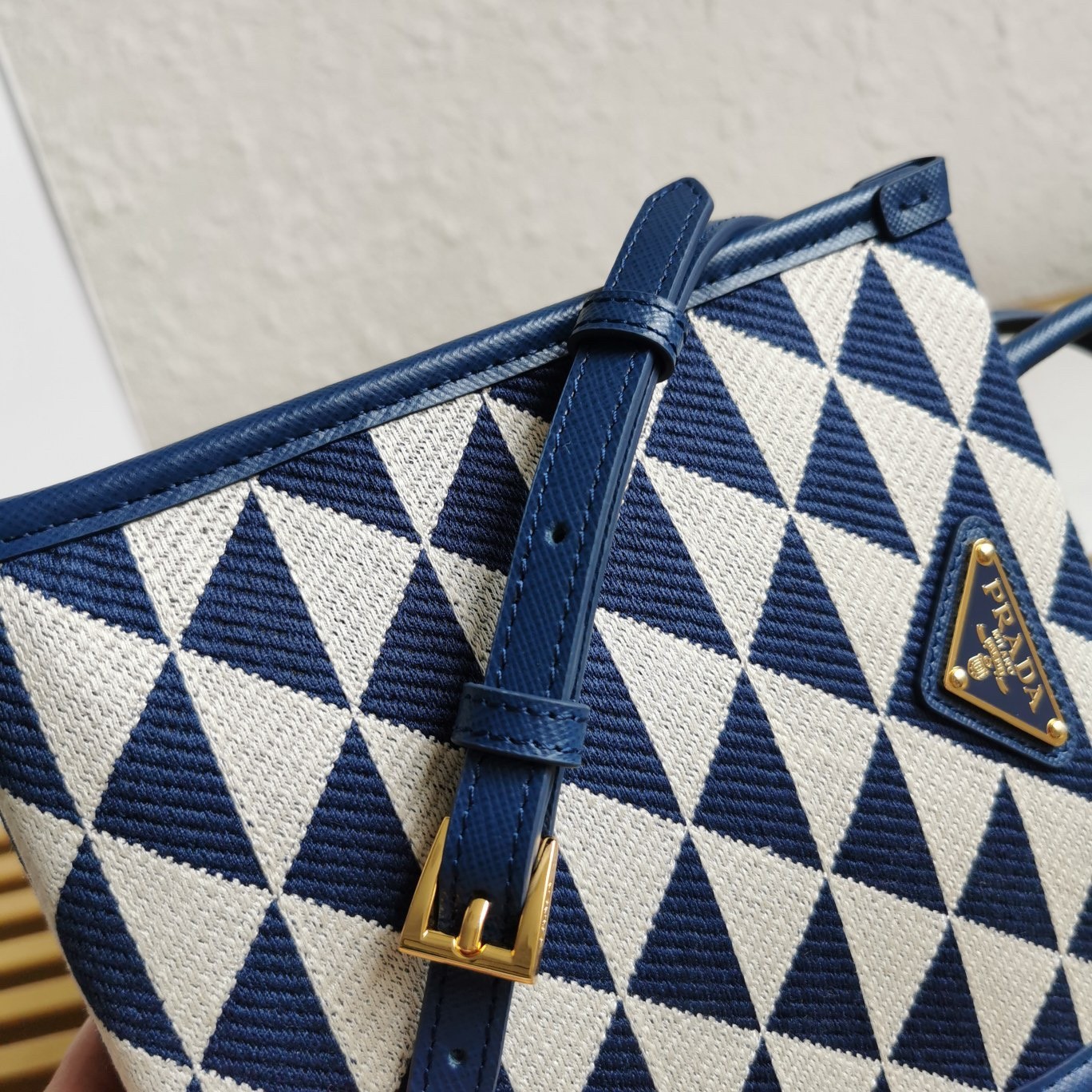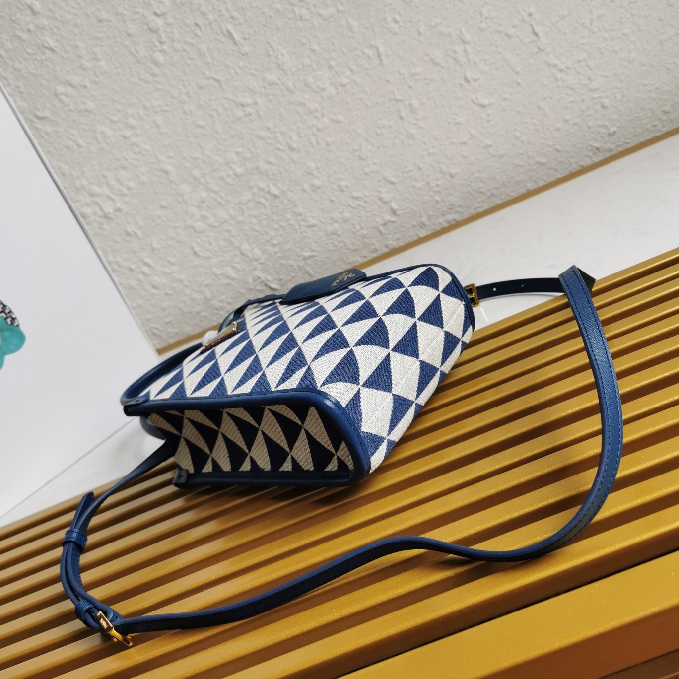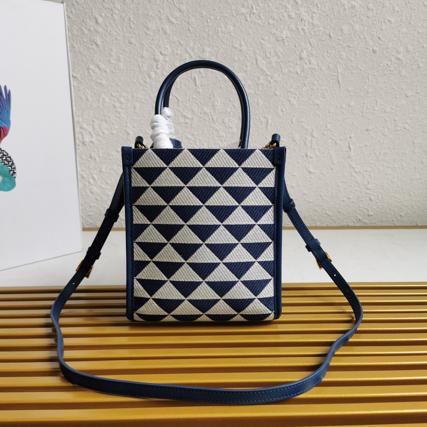 Prada Symbole Micro Bag In White/Blue Jjacquard Fabric