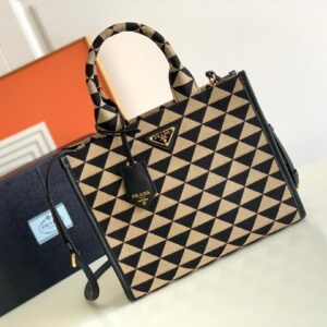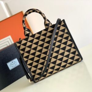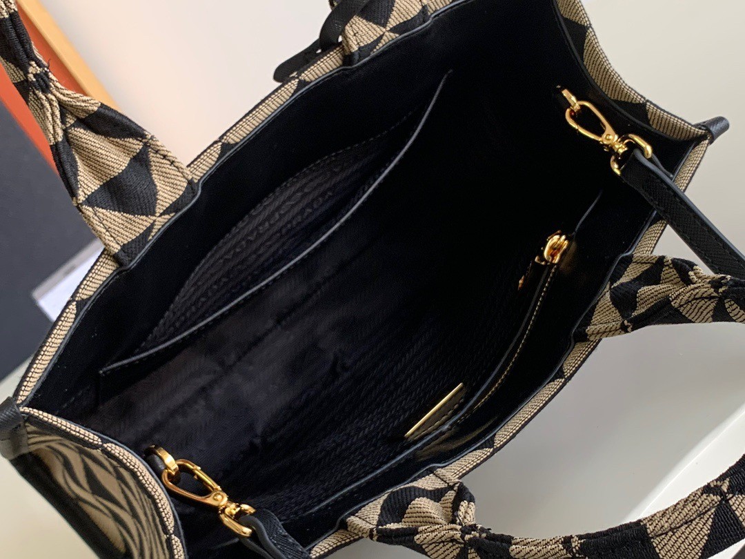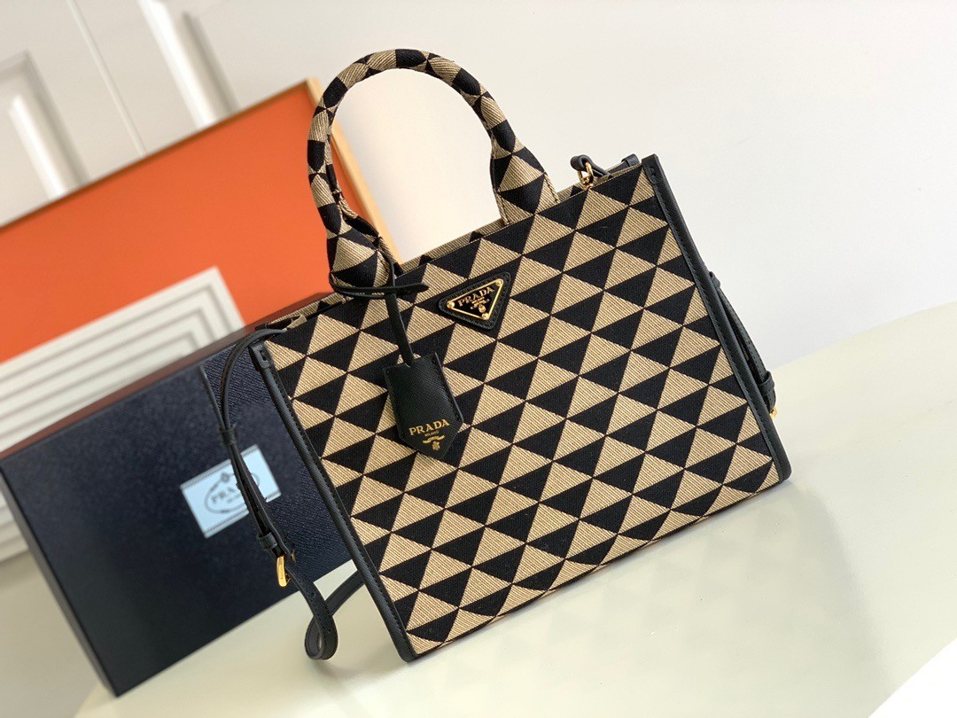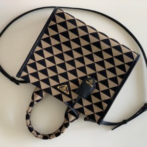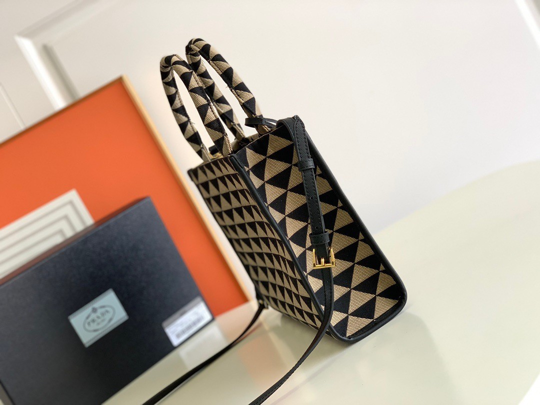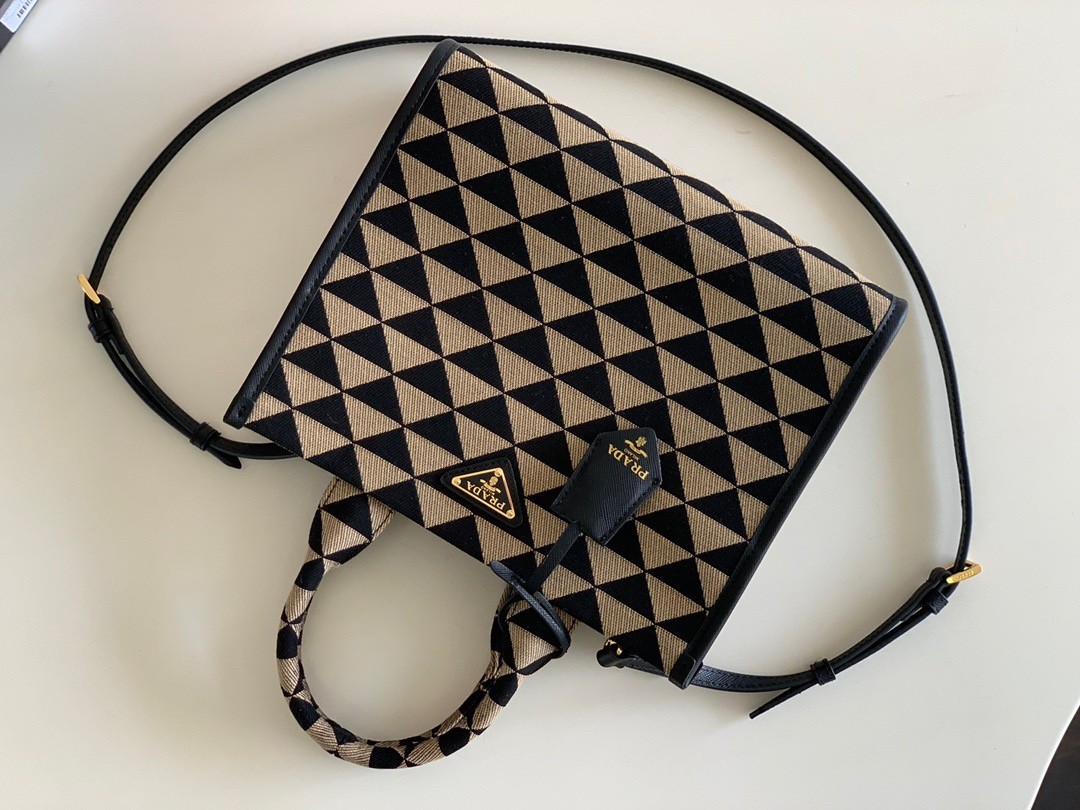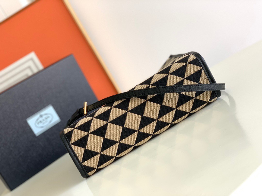Prada Symbole Small Bag In Black/Beige Jjacquard Fabric