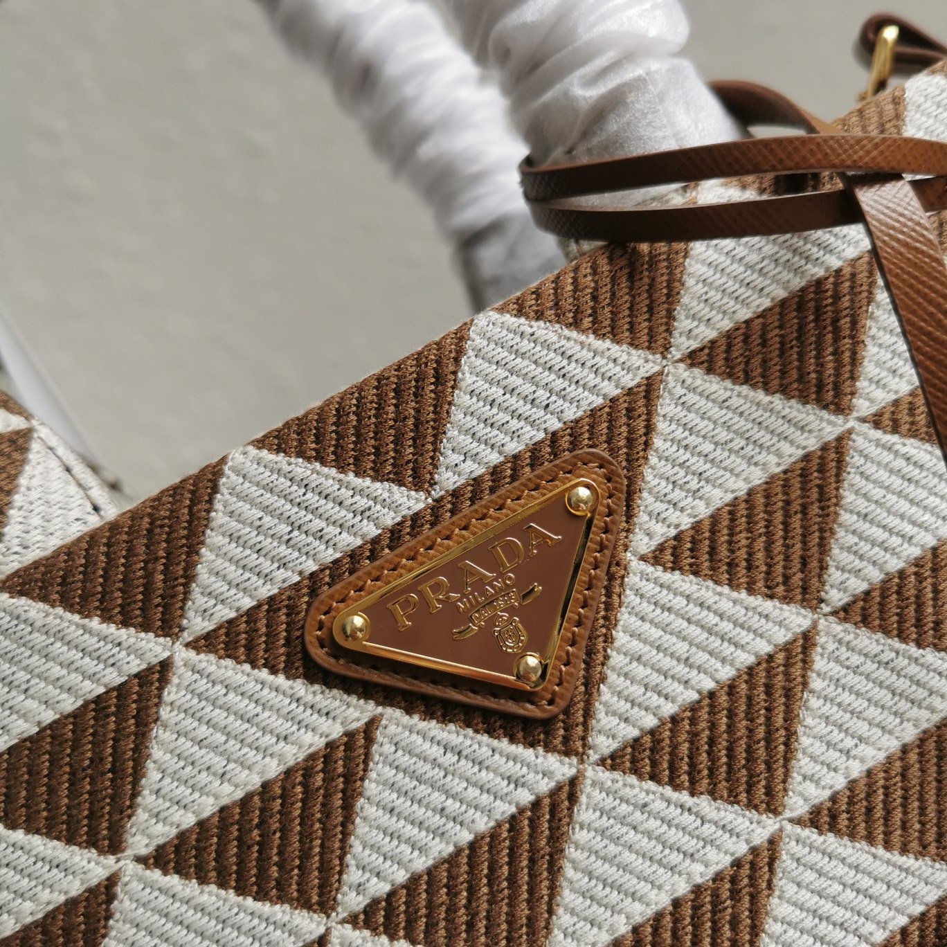 – Prada logo-print nylon lining with two pockets, one with zipper